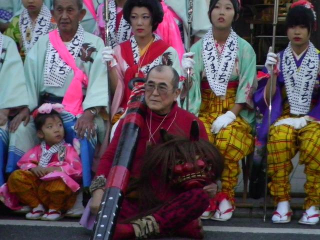 鬼はこの祭りでは人気者です。 3人の鬼の内お一人は女性の方です。
