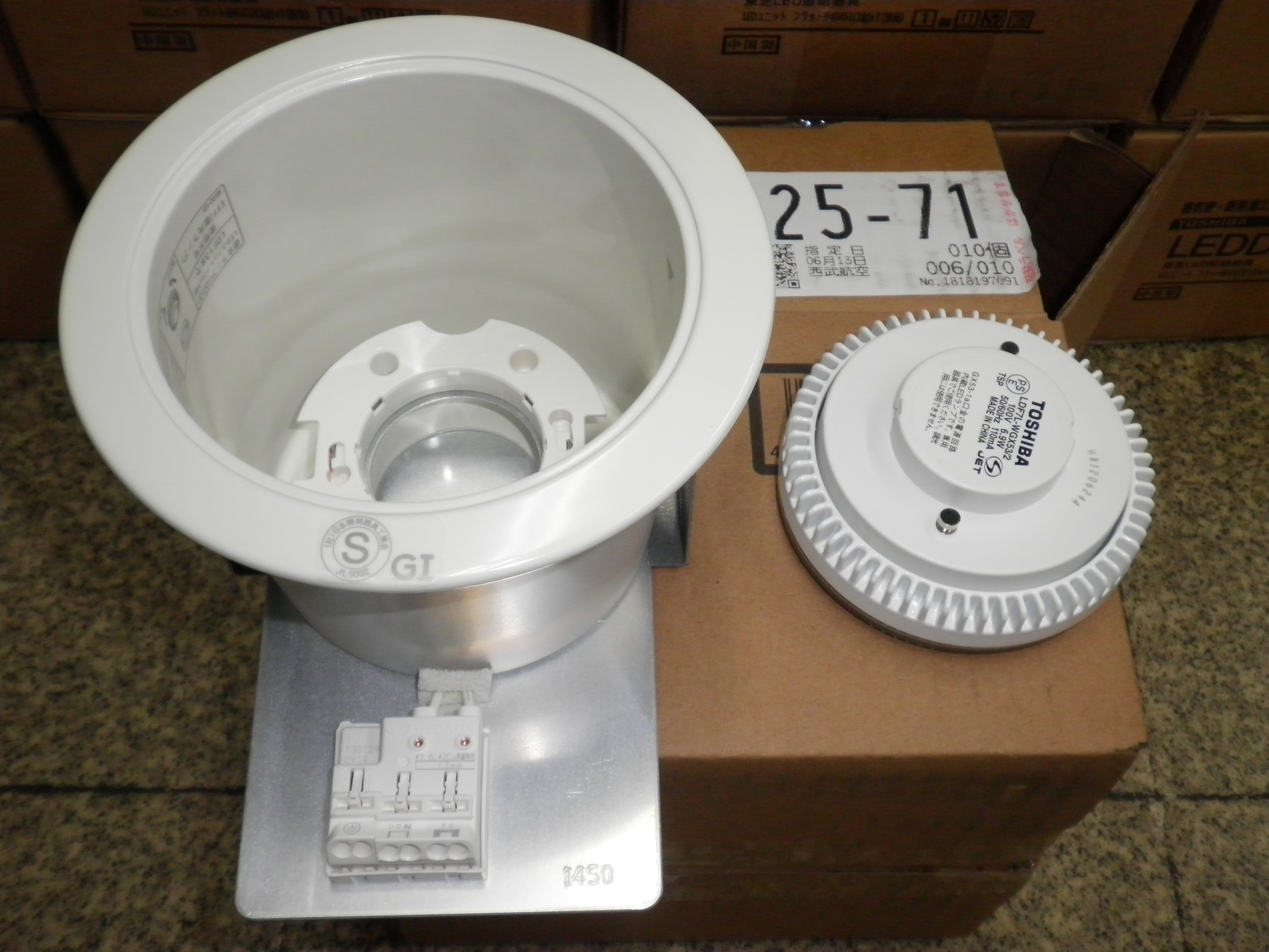LEDダウンライトに交換工事です。ミニハロゲンランプと言う100Wのランプを、LEDランプの6.9Wに交換です。 『ハロゲンランプはちょくちょく切れてしまい、交換が面倒なのと、1.700円程の電球代がもったいない』のご意見でしたので、ご提案しご発注いただきました。 9か所の交換となりました。