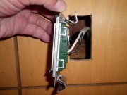 キッチンに壁掛け扇風機取付けですが、壁コンセントが無いので、扇風機の横にコンセン トを増設してきました。木質ボードの壁ですので、クズがいっぱい出ますので、開口部の 下に養生シート(ゴミポケット)を作り、その下の床にも養生の布を敷きまして、後片付けが楽になります。