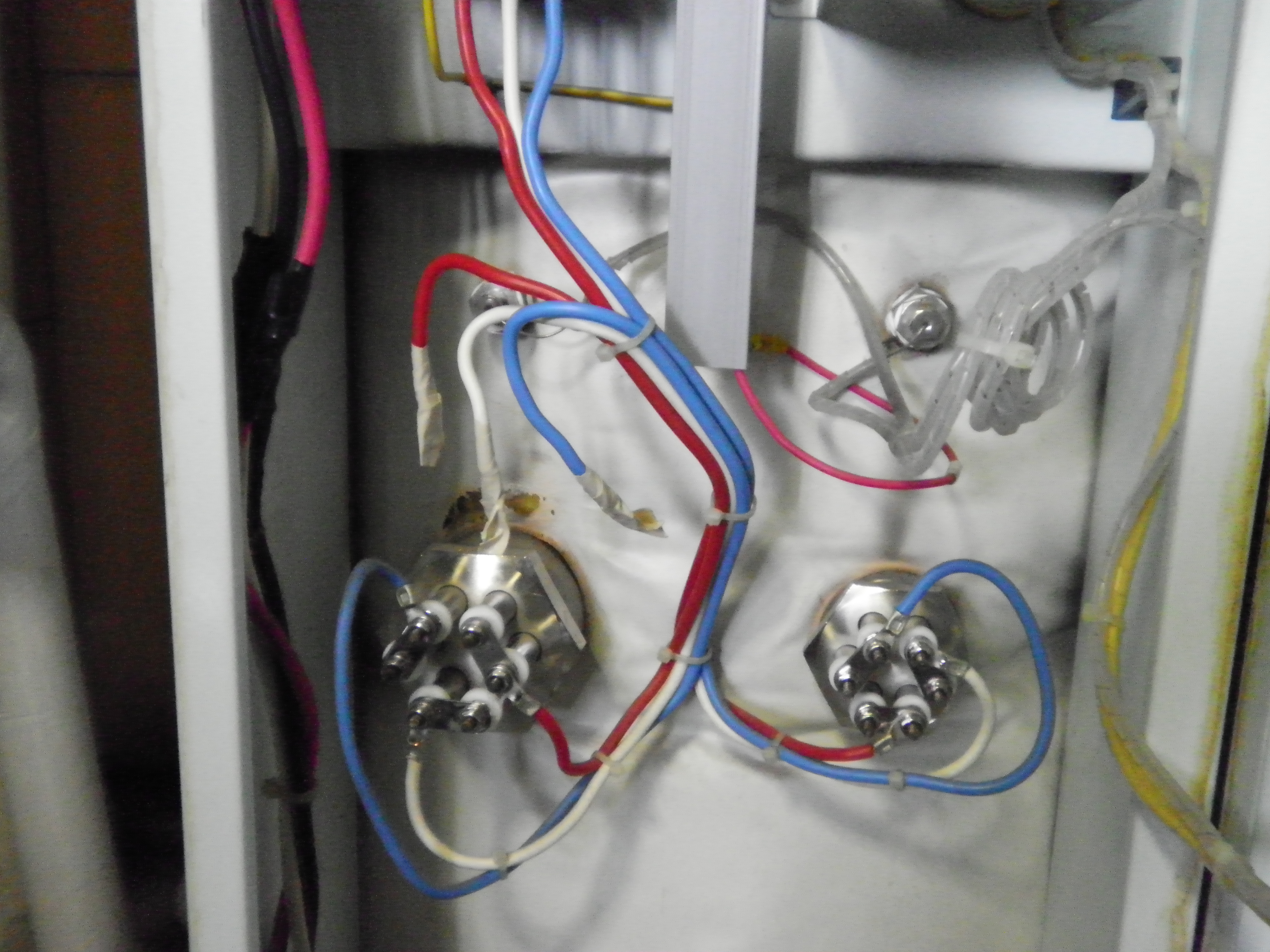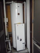 今日の午前のお仕事です。 お風呂が沸かない、ブレーカーが落ちる、2階の自宅部分にある温水器ですが、9キロの電気ヒーターでお湯を作っています。 もろにヒーターだけでお湯を沸かす、、、電気代は相当な事でしょう、、、。 私の使命は何が悪いの、、、ですので、お答えは「ヒーターの絶縁不良でブレーカーが落ちる」でした。 大小ヒーターの大が不良です。 小ヒーターを元に戻し、小ヒーターのみでお湯を沸かす事に、チャレンジして頂きました。 部品到着までの間、3キロヒーターがフル活動でお湯を沸かします。 電気代を想像するとスゴイ事に、、、。