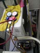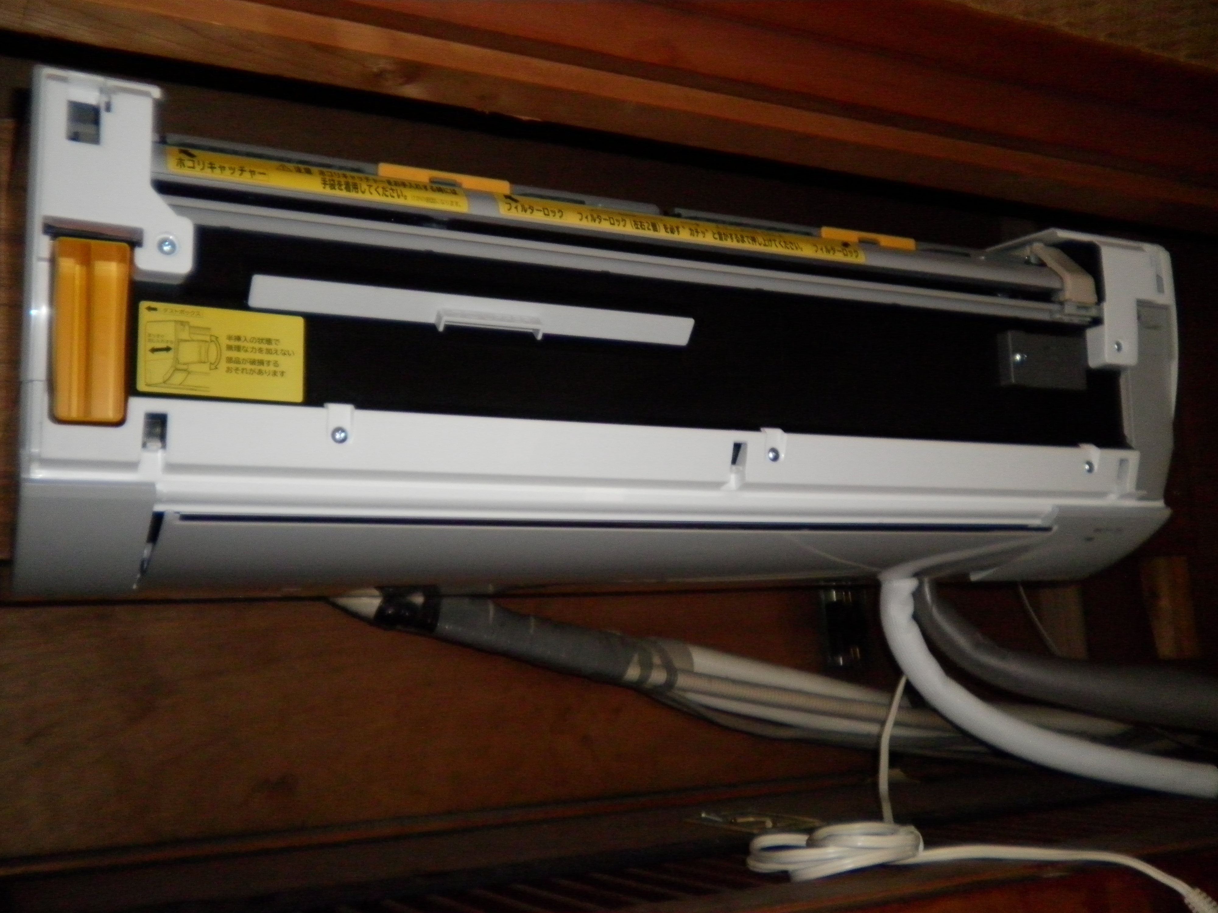 午後はエアコン工事です。 日立の28タイプ(10畳ほどの部屋に)を取付けました。 作業員3名+監督さんの4名での現場です。 私は作業員1名の中に居ます、、、。 建設の社長さんに『小山の花火』に間に合うように、エアコン工事。 雨降りバカリの毎日のラストチャンスの今日でした。 小山市の現場午後1時集合・開始に設定して、3時間半程で終了しました。 室内機は2階の和室に据付して、室外機がチョイと時間のかかる場所に据付でした。
