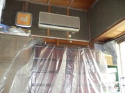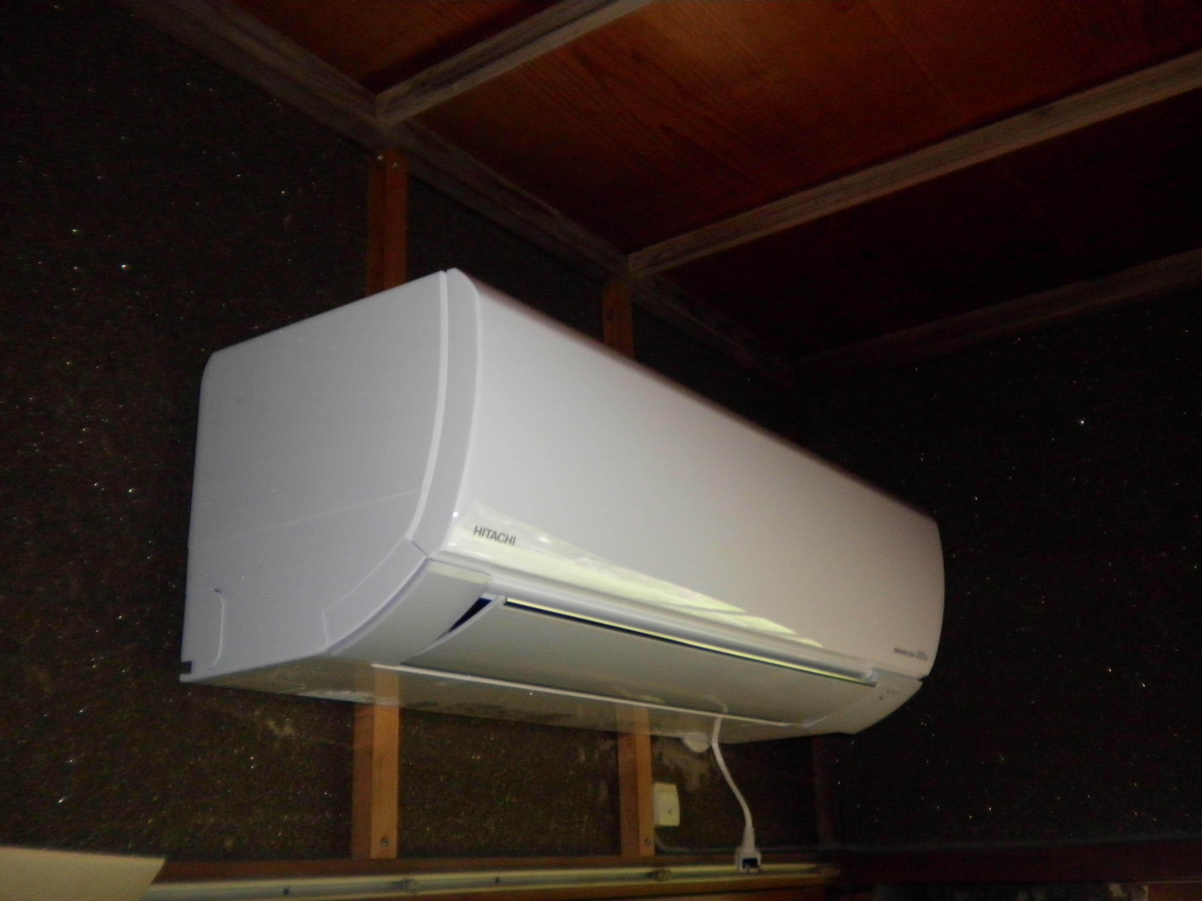新規のお客様から、エアコンの交換工事のご依頼を受けて工事をさせて頂きました。 十数年お使いのナショナルのエアコンから、日立のオールステンレス・お掃除機能付きに交換です。 壁は下地が土壁で京壁仕上げです。 指が触れただけでも京壁がサラリと落ちて来ますので注意して工事をします。