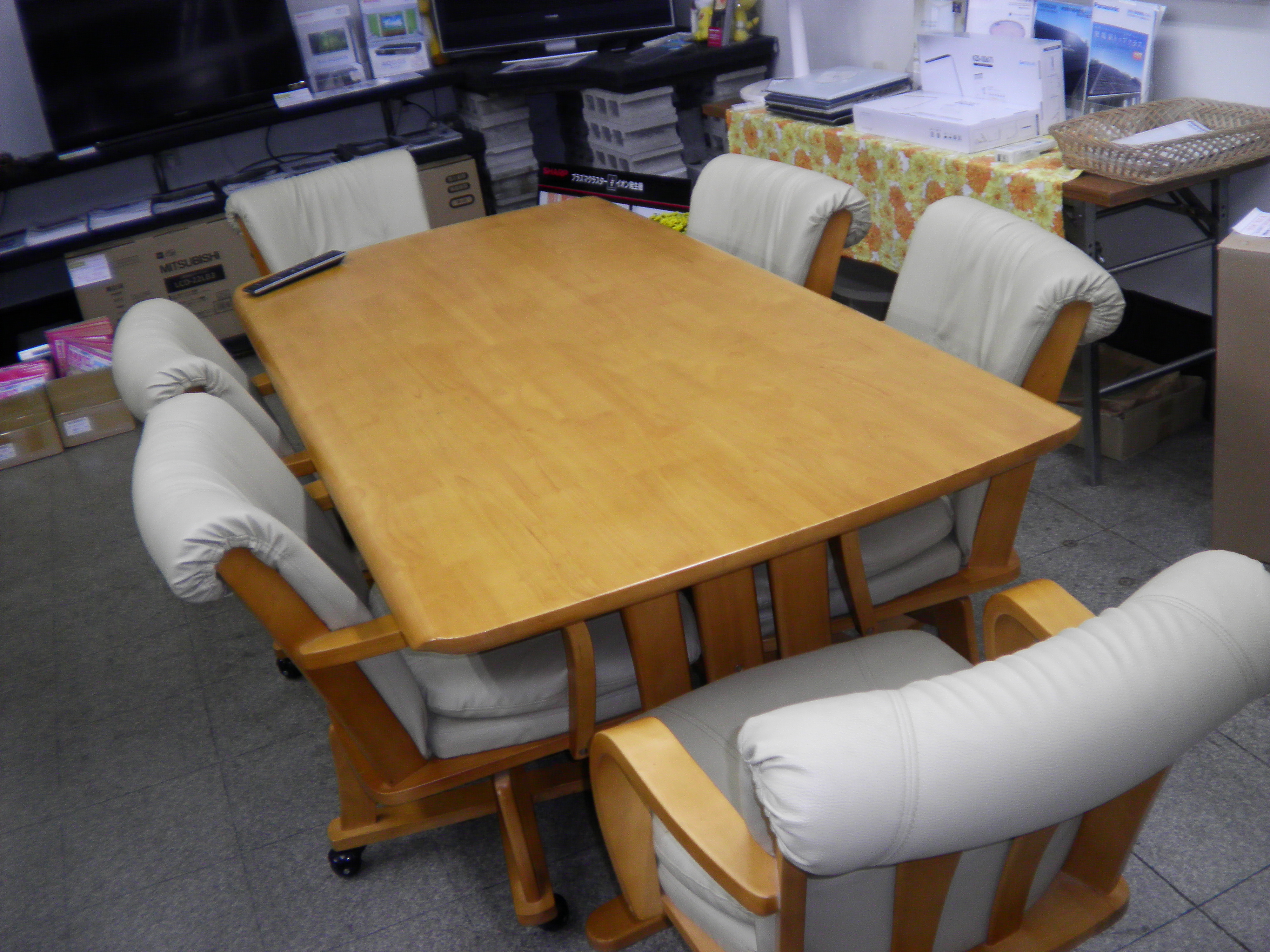 店内のテーブルも木製のダイニングテーブルに交換して、くつろげる雰囲気を造りました。