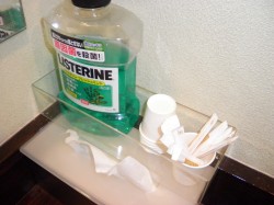 お誘いを受けて、オシャレなホルモン屋さんへ行って来ました。 焼き物や鍋料理が美味しいのはもちろんでしたが、トイレに立って手を洗いながらふと横を見ると、リステリンと小さな紙コップと楊枝が置いてありました。 『トイレでリステリン使ってクチュクチュしてね、、、。』 確かに、歯磨きは出来ないけれど、クチュクチュぐらいはしてから、お家にお帰りくださいかァ、、、。 ニンニクが効いていた、美味しいお料理でした!!!