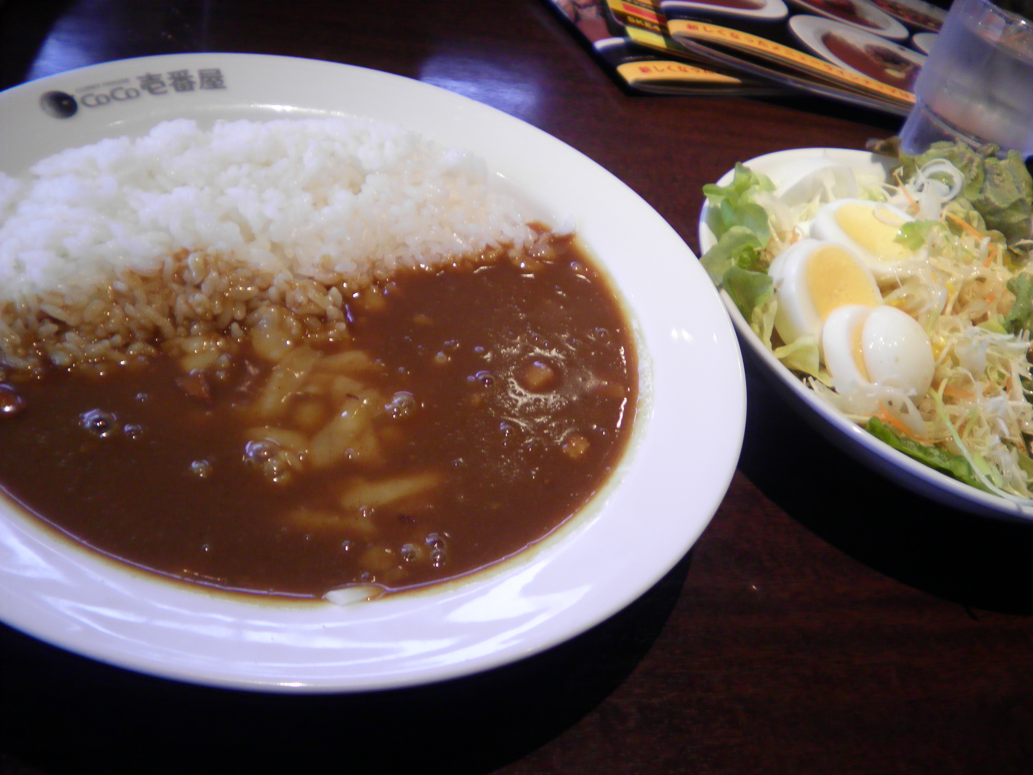 午後2時過ぎに昼飯。 「COCO壱番屋」です。 チーズカレー・ポーク・2辛・タマゴサラダでオーダーしました。 地元には無いお店でして、最近ハマっています。