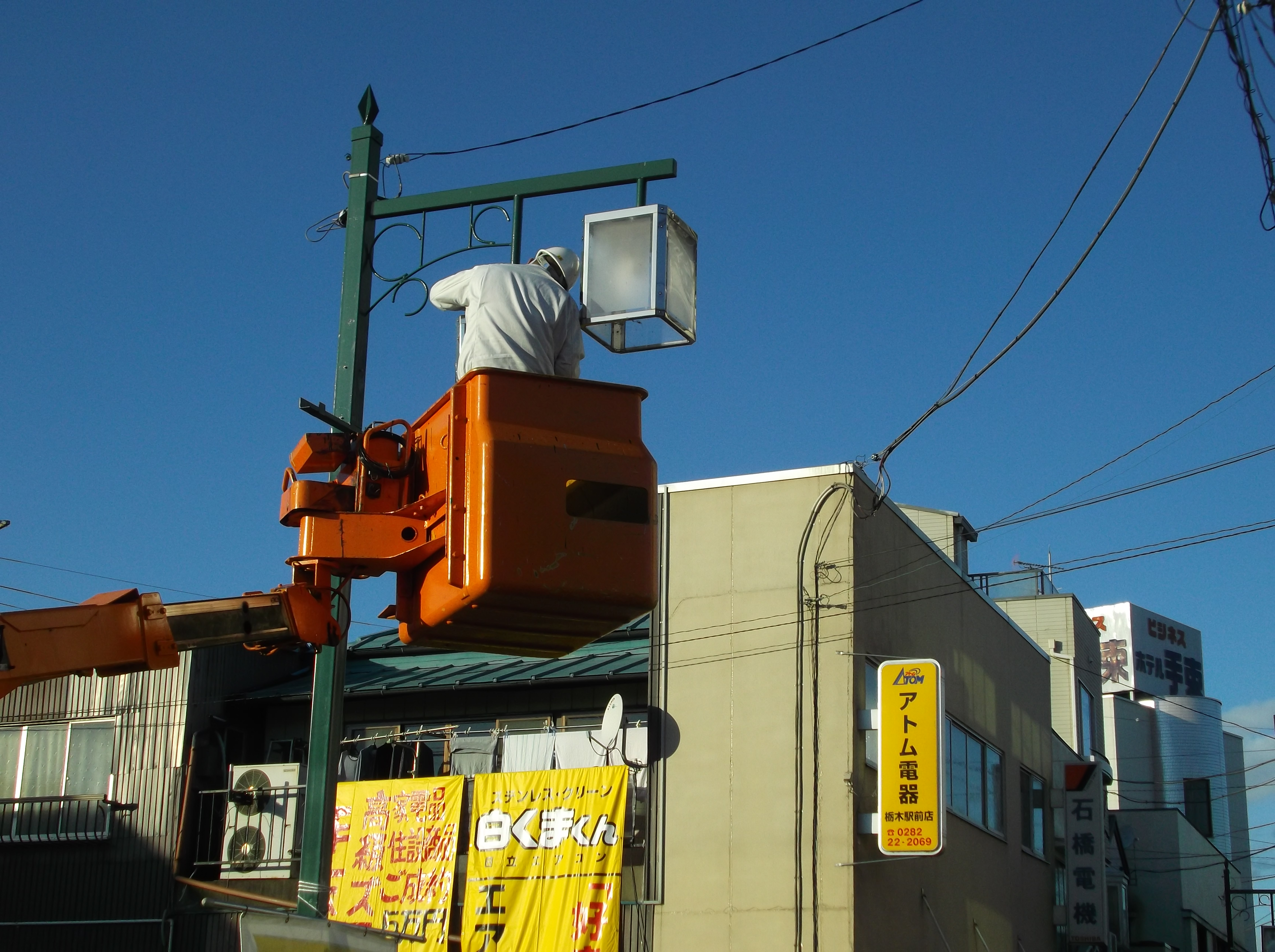 3年程前の事ですが、老朽化した水銀ランプの街路灯からLEDの街路灯に更新する事ができました。 商店会長としては嬉しいばかりですが、何と次々とLEDが消えていきまして、、、。 街路灯メーカーも最初の内は、LEDランプの生産ロット不具合と言う事で、ランプ全交換までしていただいて完了と思いきや、、、。 またまた、消えるLEDランプがところどころ、、、。 ランプか、灯具か、原因がいまだハッキリせずにいました。 どうやら灯具の一部分から水の侵入があるらしく、それがLEDランプに悪さをするらしく、、、。 LEDチップはフィリップス製で、当店の店内40WLED蛍光管もフィリップス製ですが、2年前からですが切れた事は無く無事です。 私も高所作業車には載りますが、私がやる時にはそうは高額料金は立場上頂く事は出来ませんが、業者さんはそれなりの金額でスカラ、、、。 街路灯で水が侵入してランプが切れる、、、イタチゴッコに成りそうな樹感じです。