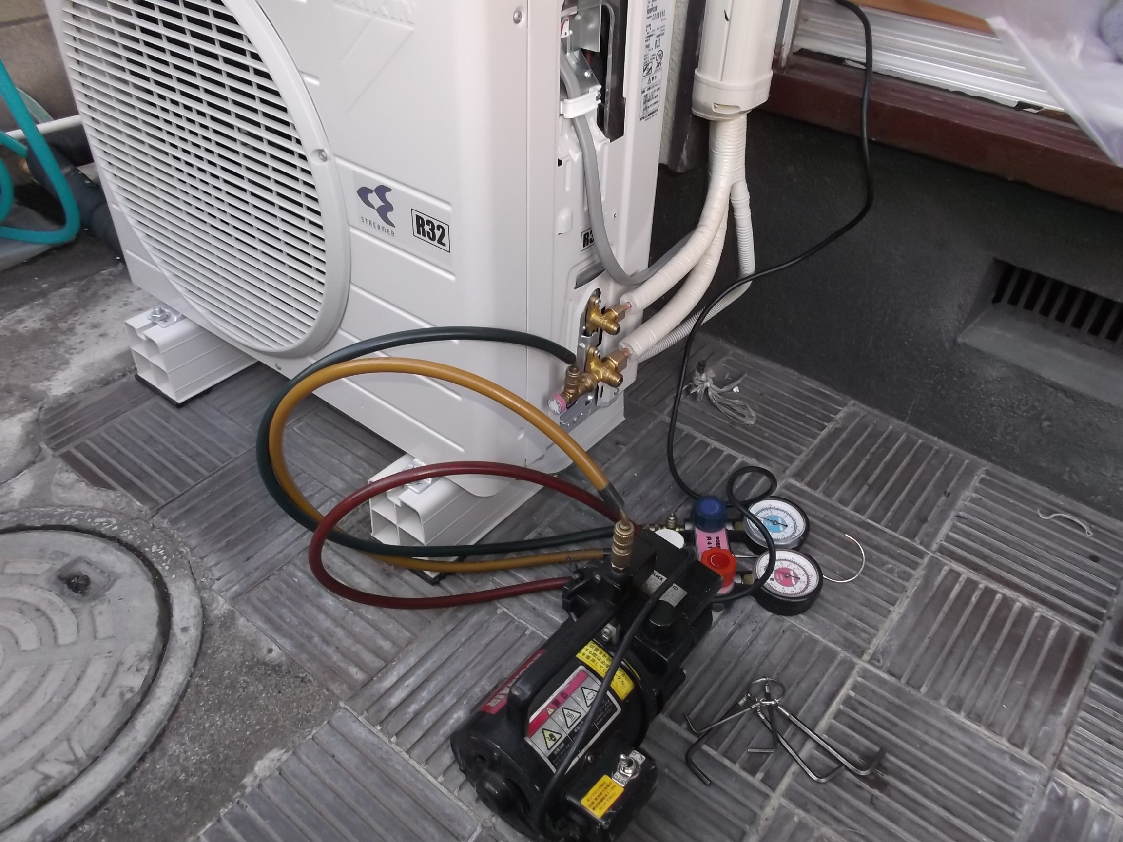 エアコン交換工事です。 ダイキンは全部「新フロンガス」のエアコンです。