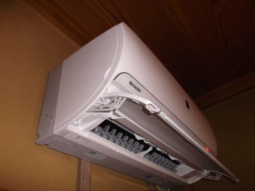 今時のエアコンは、怪獣が口を開けたような、大きな吹き出し口です。