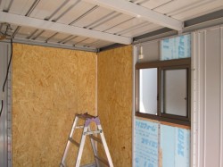 内側は構造合板(コンパネ)が張って有りますが、外部は薄い鋼板です。