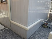 プレハブ物置にエアコンを据付します。