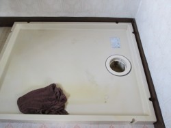 スタッフブログ 2014年4月2日今日は、午前と午後に其々全自洗の納品が在りました。 既存品を撤去して、洗濯パン(洗濯機の下の、おぼん・トレーみたいな物)を見ると、さすがに汚れとゴミが見立ちます。 すかさず持参の掃除道具でお掃除します。 お客様には、その場はご遠慮頂いて、せっせとお掃除です。 なかなかお掃除出来る場所では在りませんので、洗濯パンとその排水トラップを取り外して、キレイキレイにしていきます。