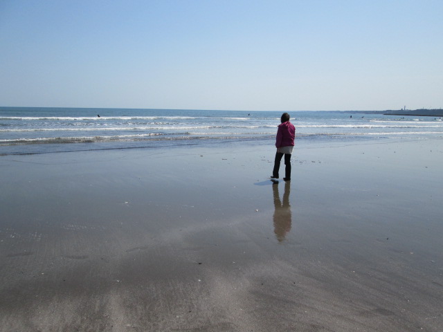 スタッフブログ 2014年4月7日「いつものコース」 北関東高速で茨城県大洗町へドライブです。 1時間ほどで太平洋に到着です。 以前は3時間はかかったので、夏の海水浴で行く程度ですが、時間軸が短くなると便利さが倍増です。 10時過ぎに出発して明太子工場の「かねふく」さんを見学。 こちらは見学自由・試食在り・ジュースの自販機が無料、、、。 昼食は「海鮮丼」「生しらす丼」と思いましたが、カニ汁・カニ飯のお安さ感満載のお店をチョイ!!! お腹いっぱいになるボリュームでした。 帰り掛けに大洗サンビーチへ寄り道です。 水平線を見つめる女性が一人、、、。 うちのオカアチャンでした。 で、栃木市に2時半頃には到着したいました。(方道 98㌔のドライブです) 明日から、お仕事頑張ります。