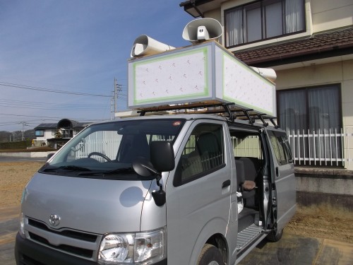 スタッフブログ 2014年4月17日若い時から応援している方の、せがれさんの選挙が真っ最中です。 この車の朝晩の準備をしたり、運転や助手席で「人間ナビ」したりしてます。 12日の土曜日まで仕事と選挙のかけもちです。
