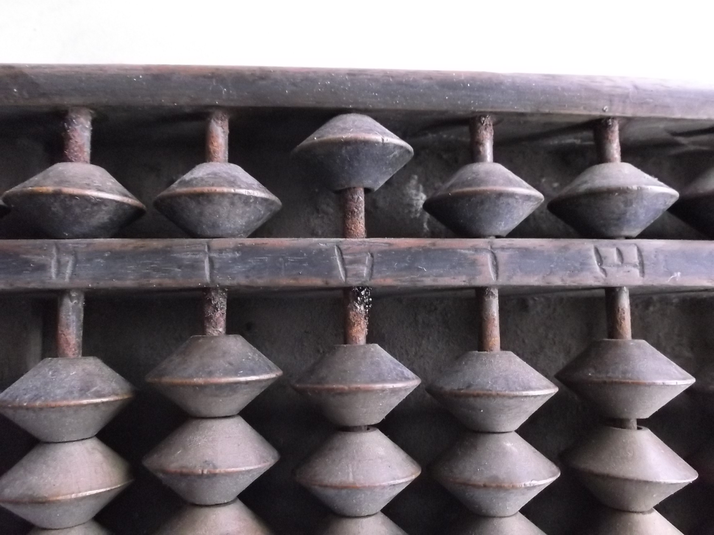 そろばんです。 相当な年季の入った、珍品。 使い込んだ様子が解かりますねェ、、、。