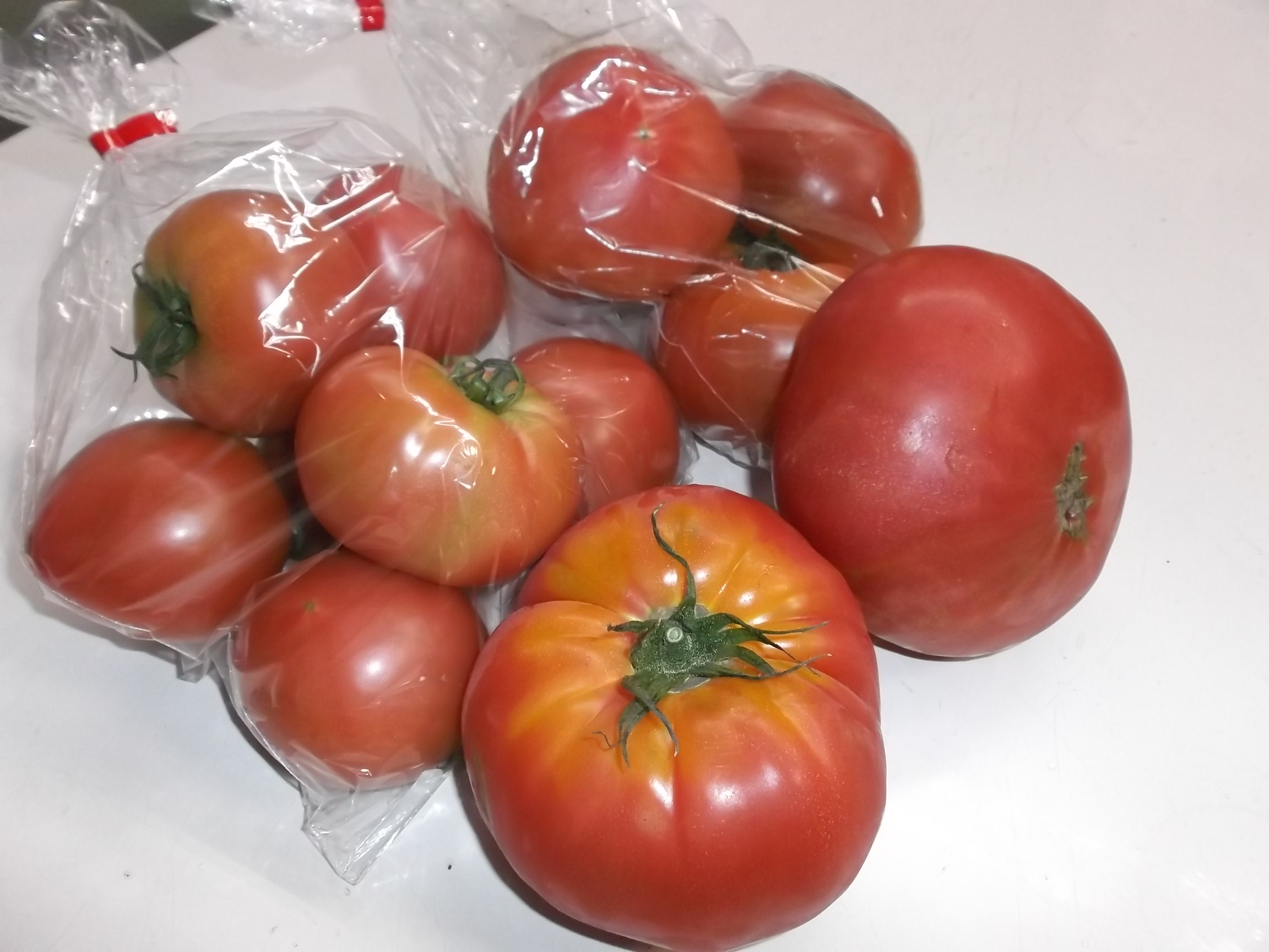 袋入りは、自宅の道寄りで販売しているトマトです。 甘いし・酸味も程ほど・・・何より、トマトの皮が薄くてその食感が最高でした。 頂いたこのトマトを「おつまみ」に、只今ビールを頂いています!!!