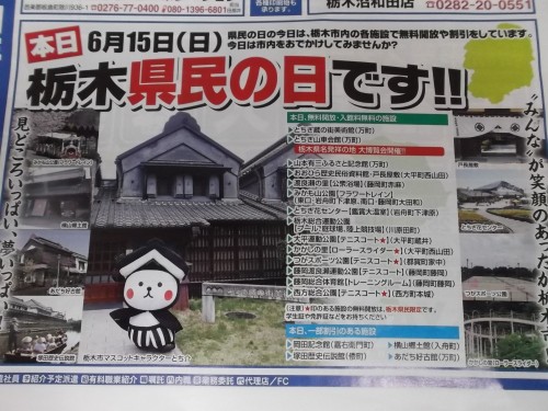 スタッフブログ 2014年6月15日今日は、「栃木県民の日」でした、、、。