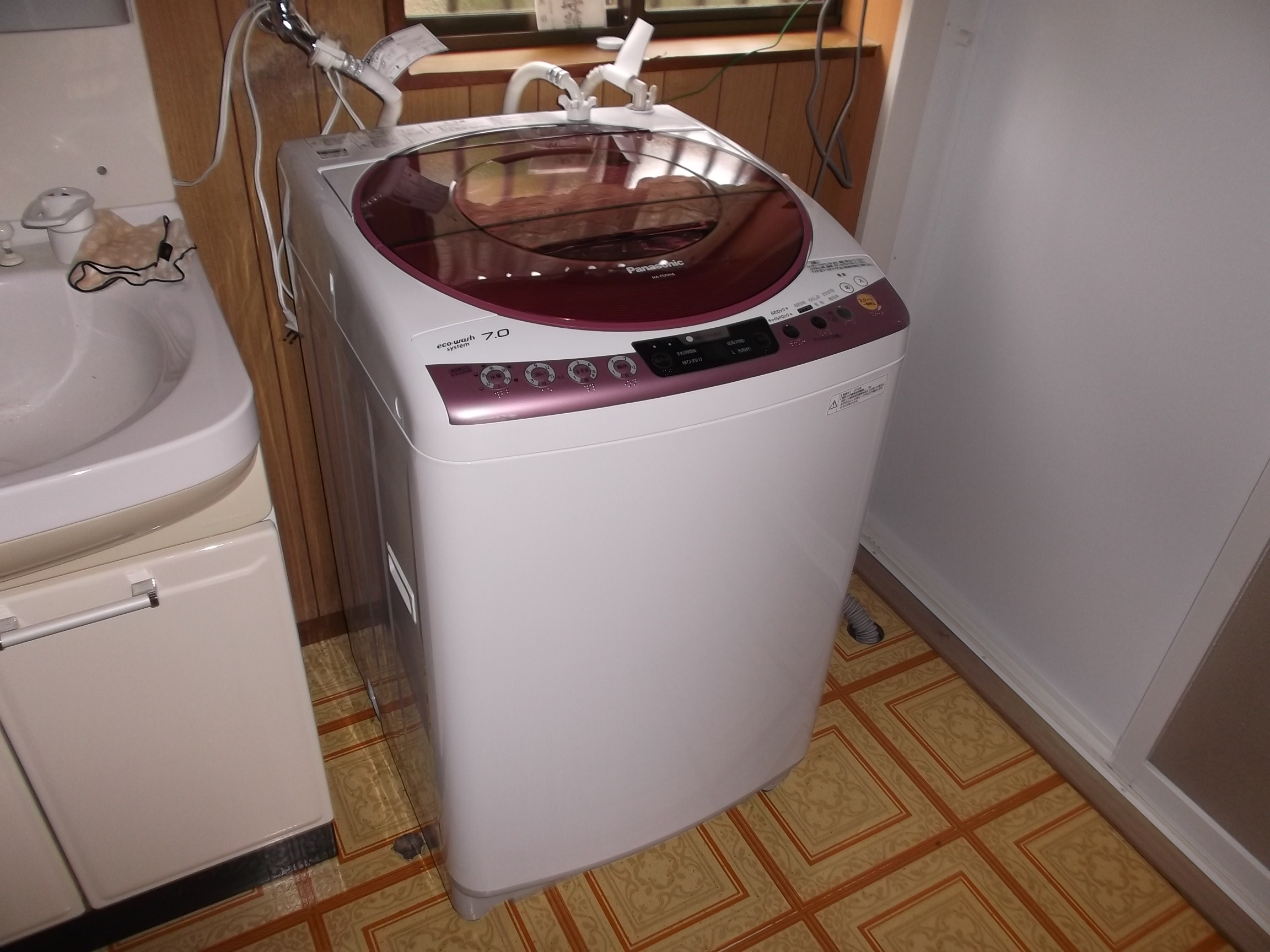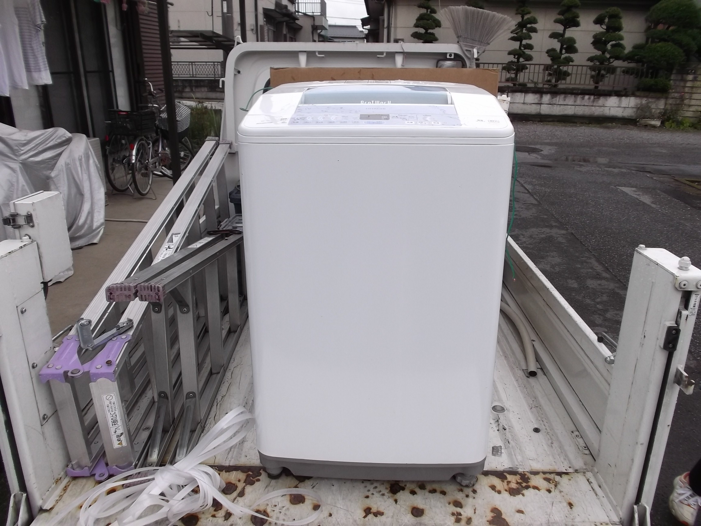 2007年製の全自洗を脱衣場から撤去します。軸本体に問題があり、動作させるとガラガラ音でお話も出来ないほどの騒音になります。 3回目の故障発生ですし、訳在りで量販のYさんから購入され、対応がなかなか、、、で。当店にご依頼いただきました。