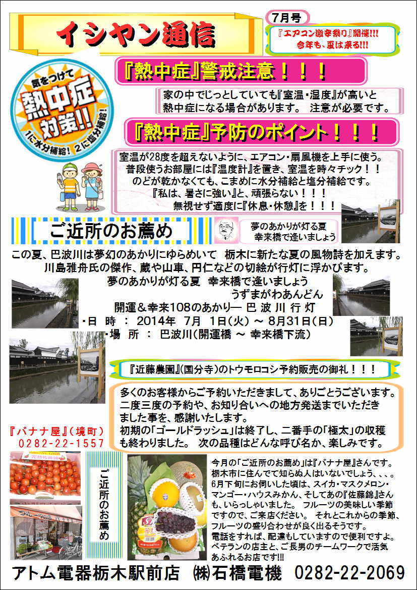 スタッフブログ 2014年6月30日6号からの「ご近所のお薦め」を二つ載せてみました。蔵の町観光のお薦めと、ご近所のフルーツ屋さんです。 機会が在れば、ご来店ください。 「蔵の街 とちぎ」も外国の方が多く見かけるようになりました。