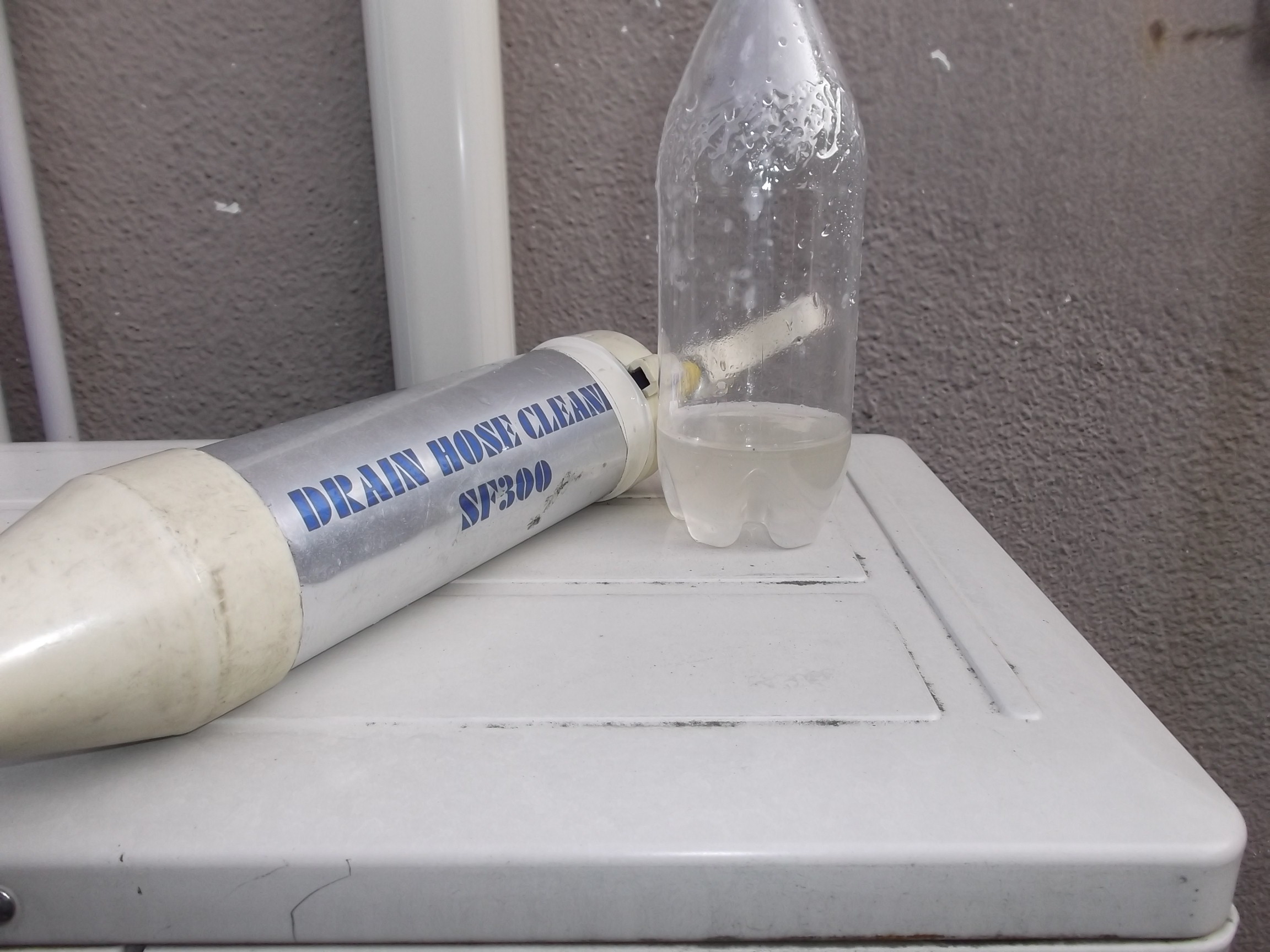 ドレン管からお水が出るのは、普通な事です。 が、運転していないのに吸い出しポンプ(バキュームポンプ)で吸い出すと出て来ました。濁りと粘りの在る液体です。