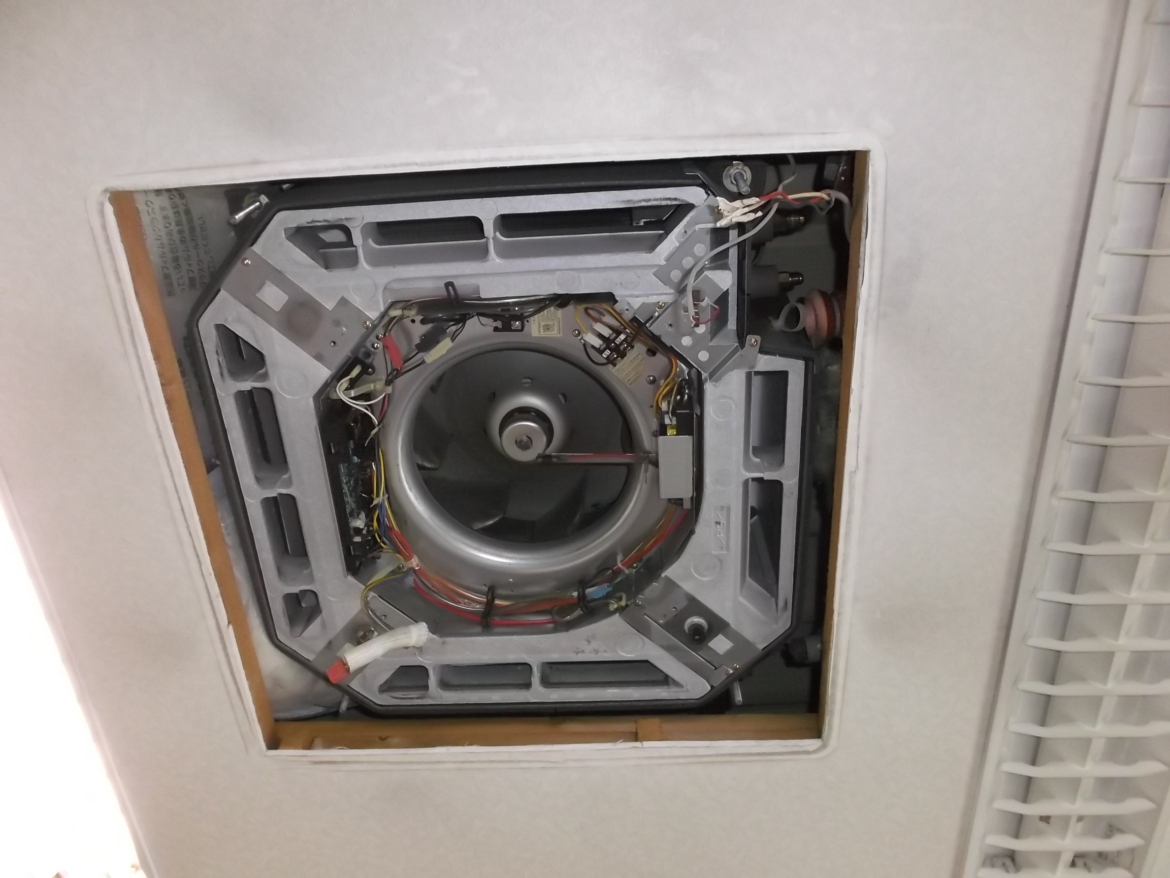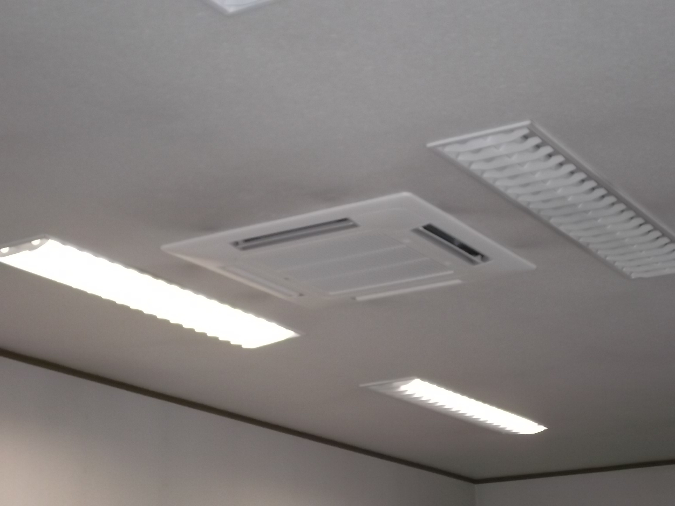 事務所天井の「天カセ」(天井カセット式エアコン)を交換します。故障している訳ではありませんが、早めの更新と言う事でご依頼を受けました。