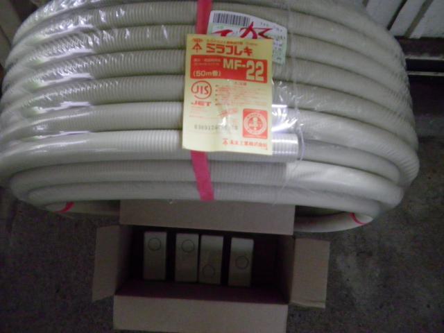 同軸ケーブルとPF管は、よじれが出ない様に『素直に』伸ばしていきます。