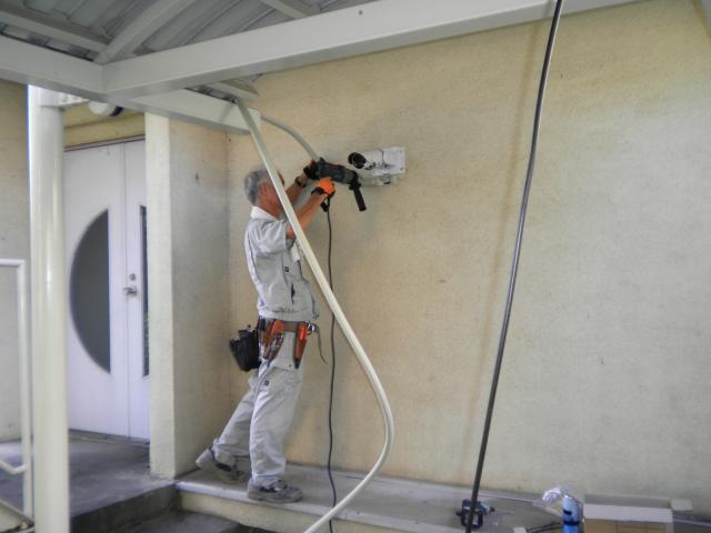 監視カメラ工事と全自洗修理の落差が、、、街の電気屋さんならでは、、、。