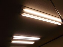 初めてのお客様からのご依頼です。 お店の天井照明が1か所だけ点灯しないとの事でお伺いしました。 調べた結果「電子安定器」の不良です。 器具1台の価格もそれ程の金額でなければ交換との事で、同一メーカーの器具に交換しました。 他メーカーですと幅寸法が20mm程違い、器具痕が見えてしまうので同じメーカーとなります。 電材屋さんに現場で電話し、確認して発注しました、、、。 在庫の同一規格の器具を付けていたら、二度手間の作業になるところでした。
