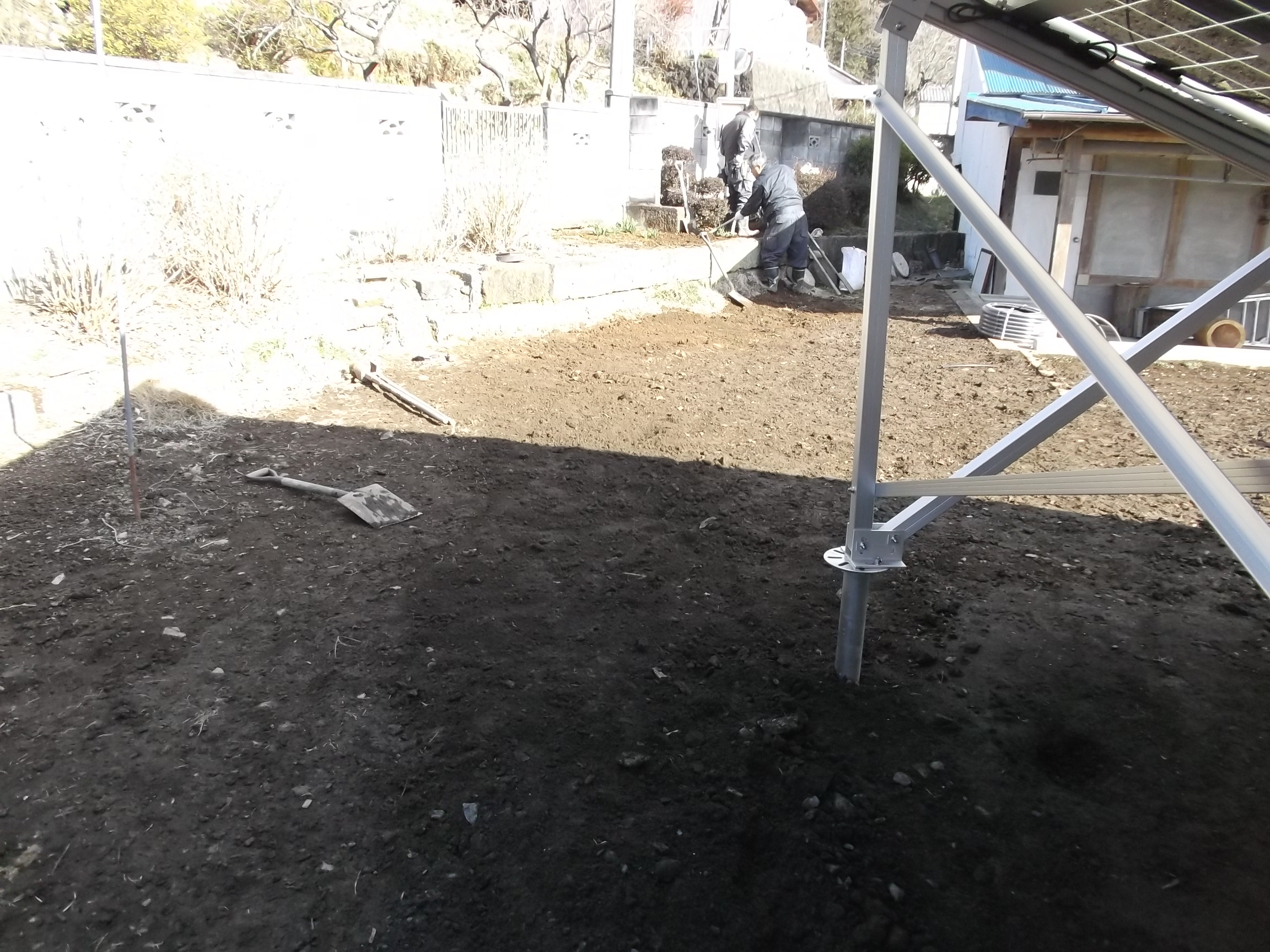 終了する頃には日が傾き、寒さも朝一の時と変わらないくらいに感じます。 この後はパネル周りに砕石を敷き詰めて、東電さんとの連携のを待ちます。