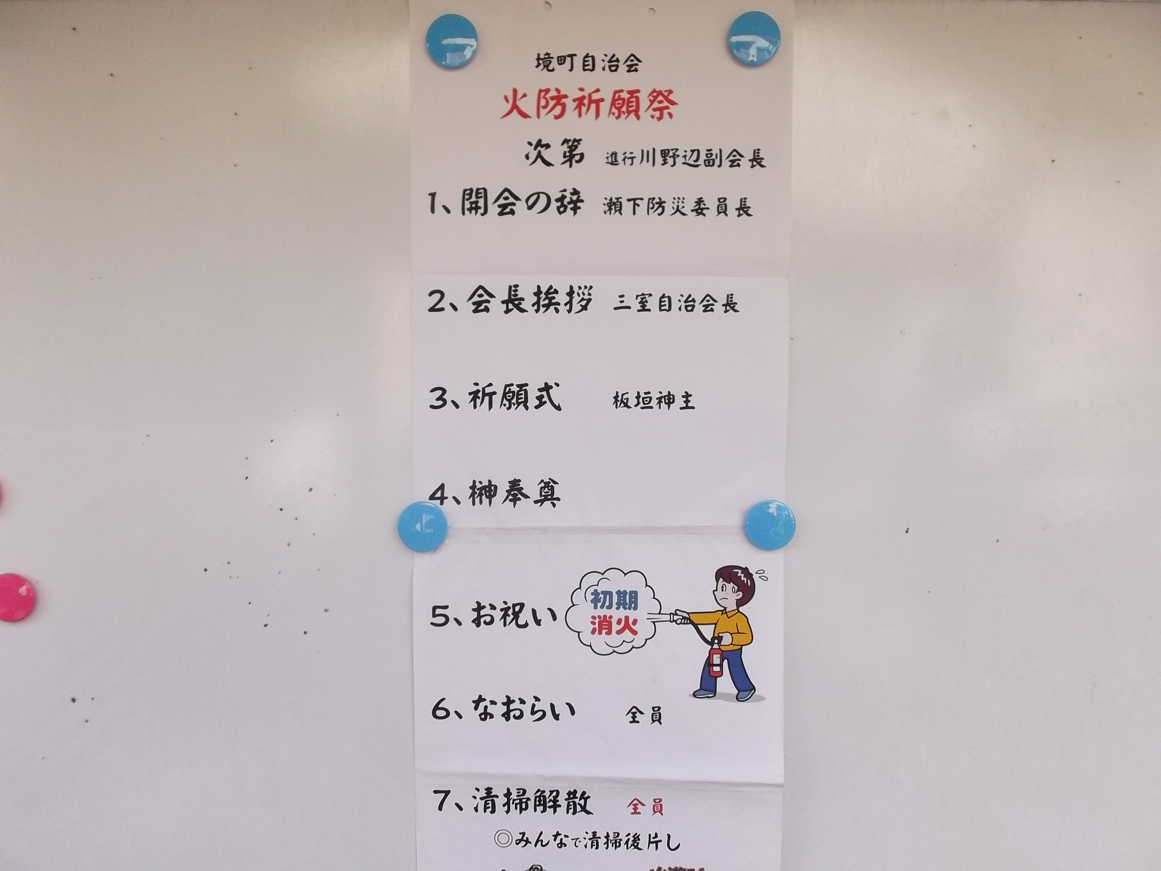 この式次第は80歳の方がパソコンでプリントしてくれた物ですが、我が町内は高齢の方のほうがお元気で活躍されています。