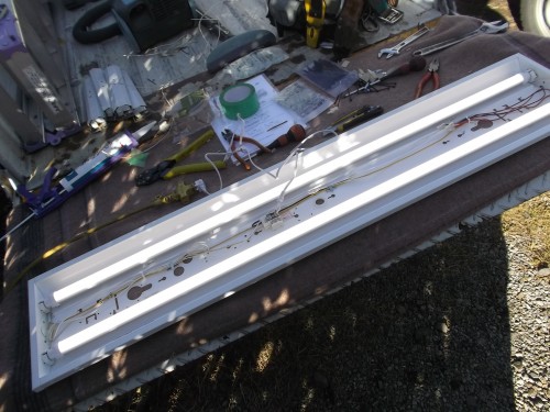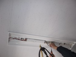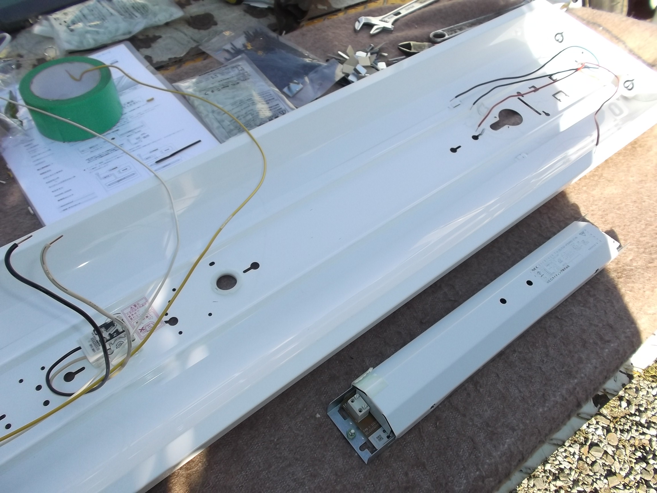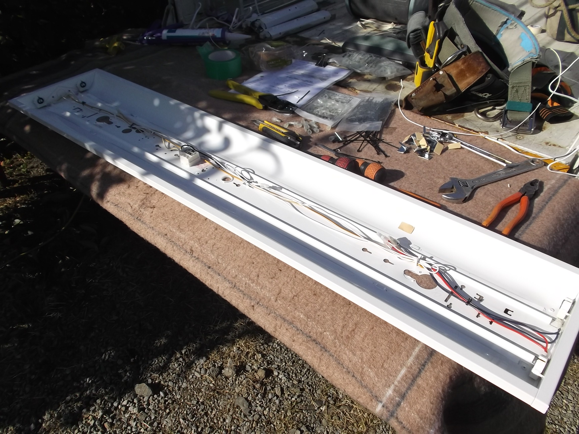 安定器を取り外して、決められた配線に改修し、配線を綺麗に取りまとめ固定部材で止めて行きます。 これは電気屋さんじゃないとしてはいけません!!! ネットの動画で「簡単に出来ます」と片言の日本語で解説してる様ですが、してはダメです。
