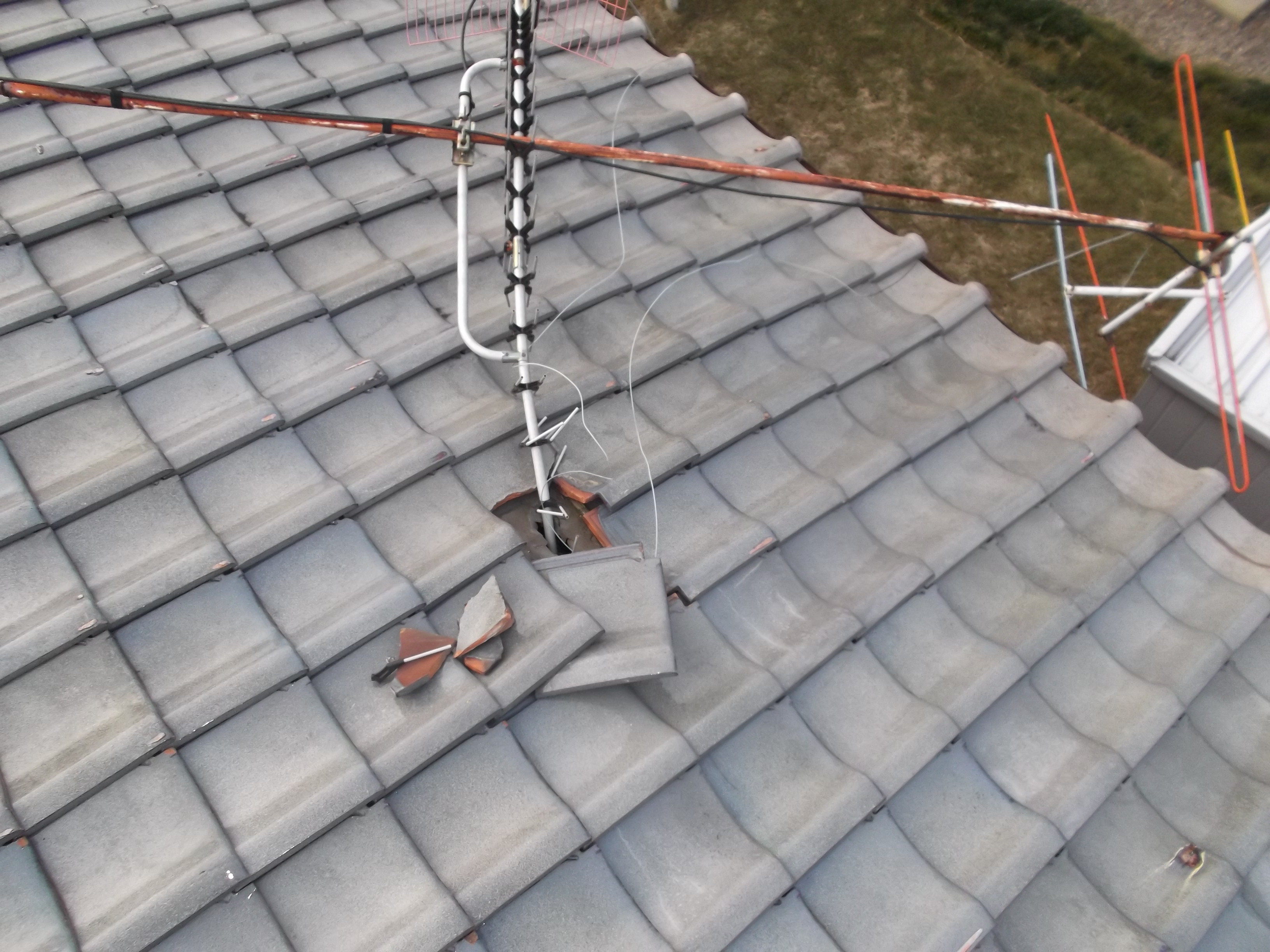 2015年11月8日 スタッフブログアンテナ工事のご依頼を受けお伺いしてみると、アンテナが在りません。 アンテナ倒れは聞いていて、撤去してから建てるつもりでしたが、屋根に上ると、、、。