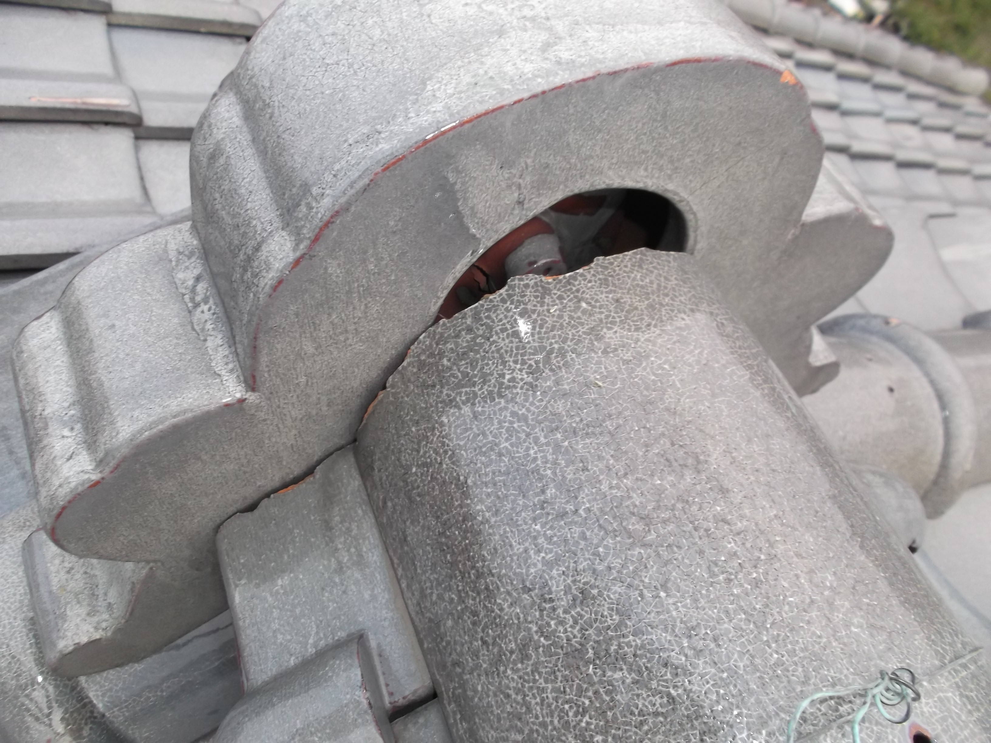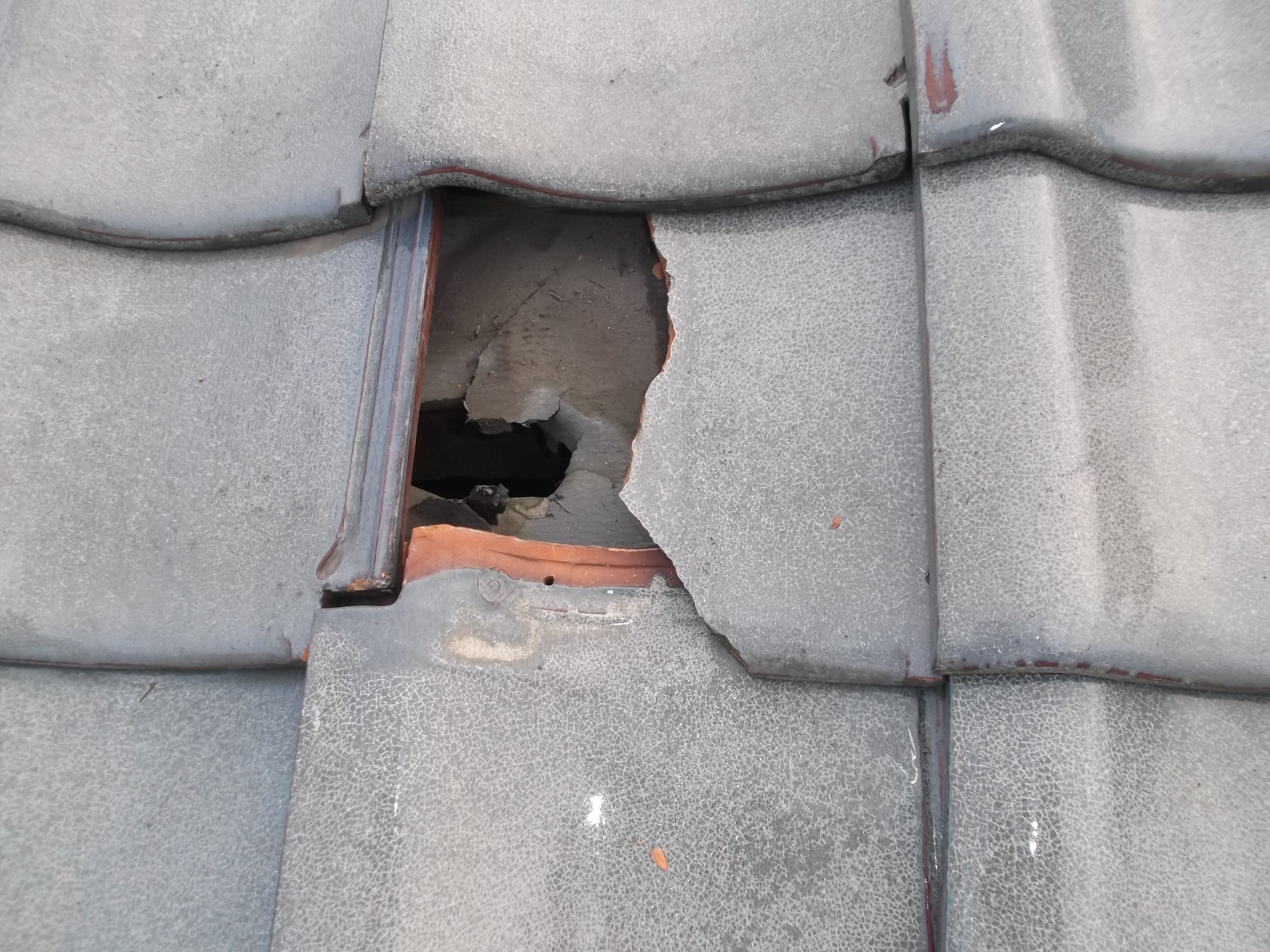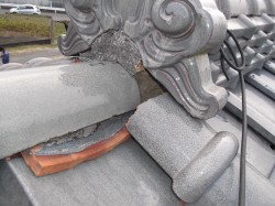平屋です。 地元栃木市では、アンテナ用のパイプを2本繋いでの工事が一般的です、、、。 7メーターチョイのアンテナパイプを屋根上で立ち上げ、支線も4本を2段の、8本吊りで支えます。 工事自体は2時間程で終わりましたが、屋根瓦の穴開きの他に、瓦の漆喰がほとんど無くなっていて問題です。 瓦交換と漆喰補修は、お客様にご相談しようと思います。