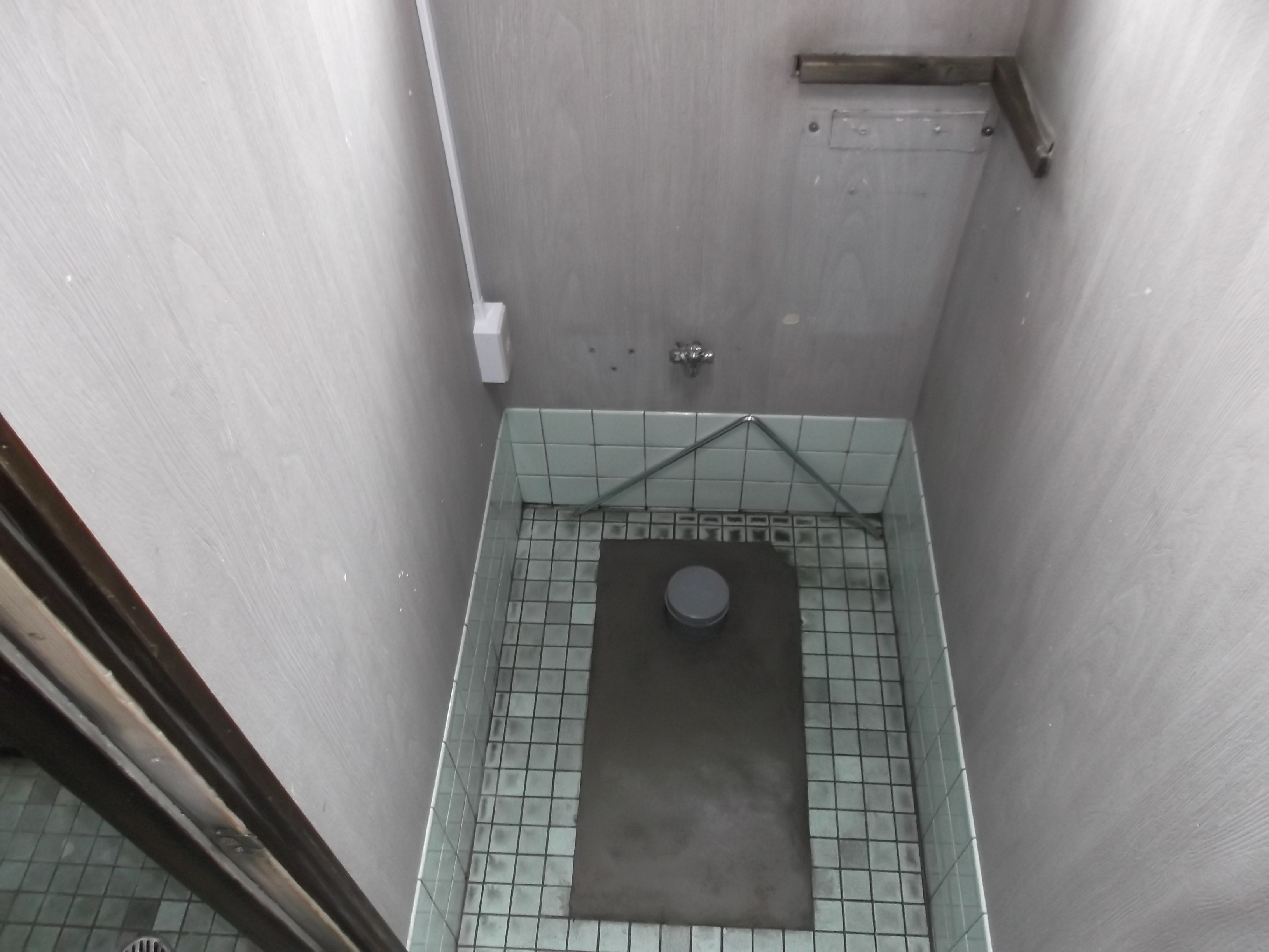 水洗の和式トイレです。私ぐらいの年齢では、「かがめます。」、、、。 若い方のなかには、特にお子さま達では、後ろに倒れ込んでしまうらしいです。 店舗を新たに始めるお客様からのご相談で、洋式にする工事です。