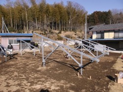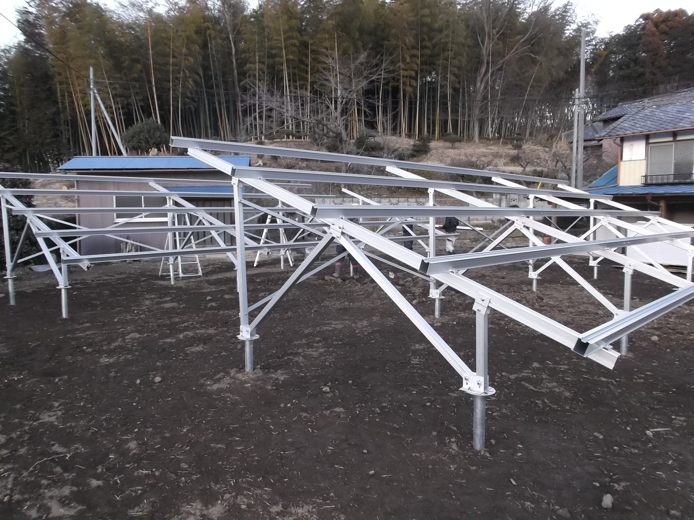 昨日の夕方までにこの状態になりました、、、。 今日からパネルを載せる行程になりますが、アトムの東京社長会に行って来ます。