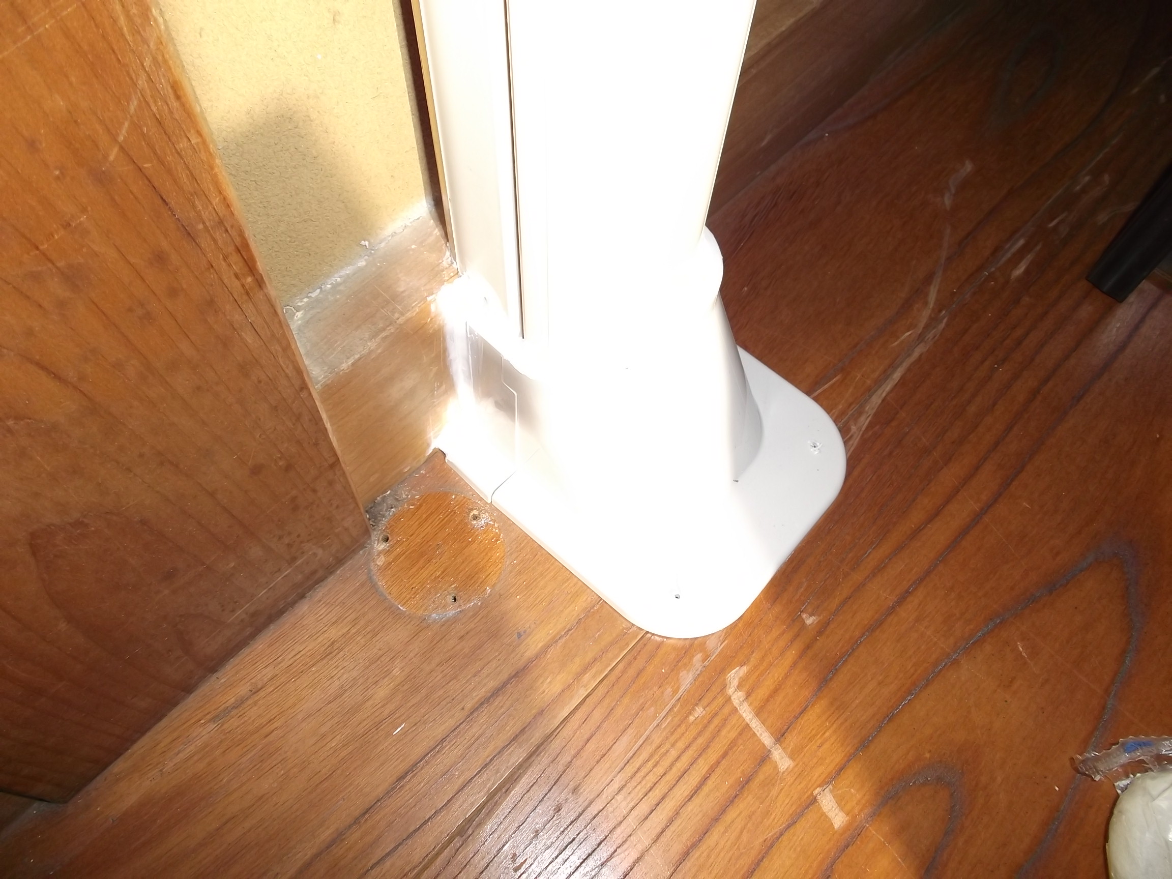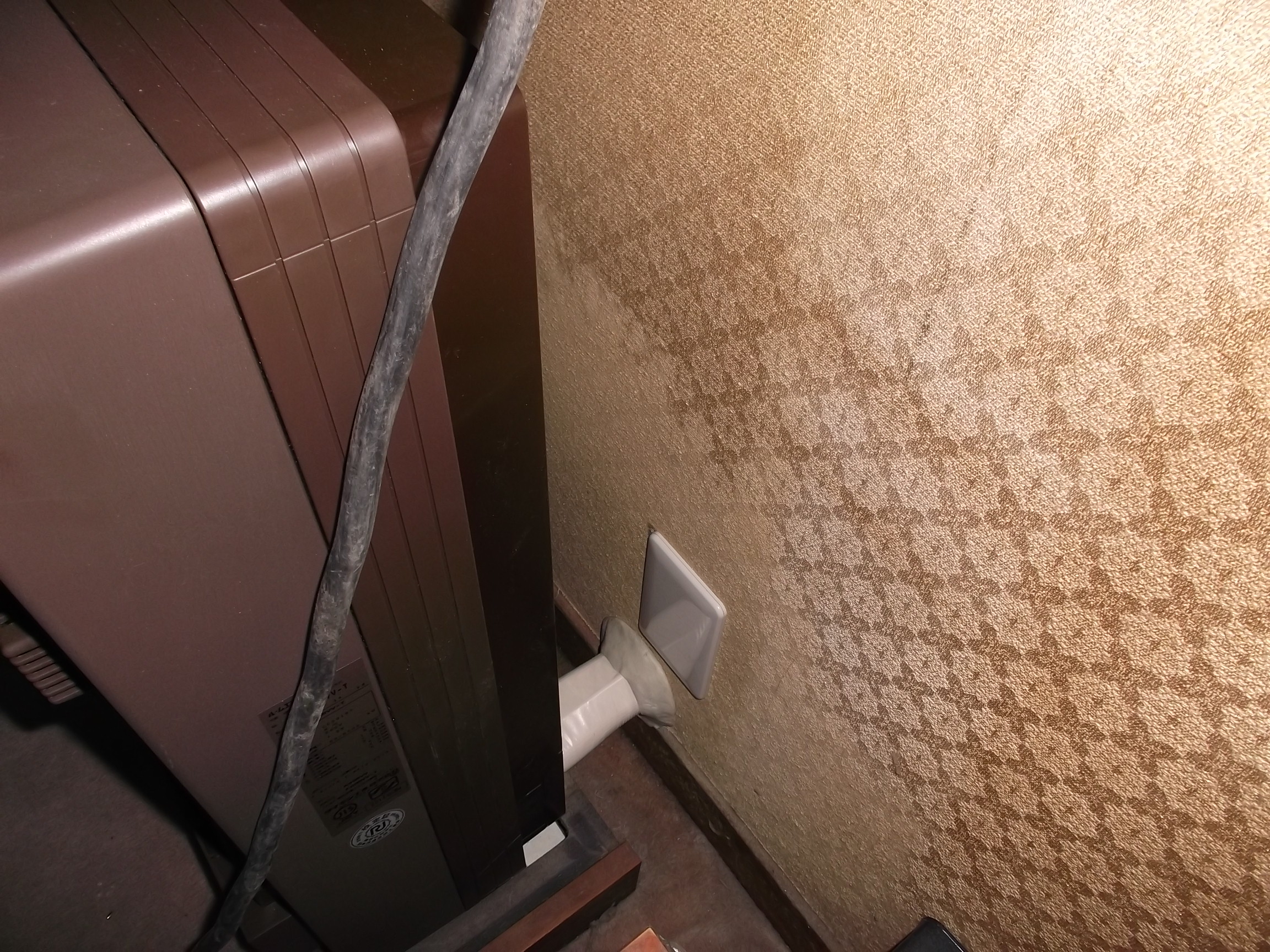 既存の配管は床下を通過していましたが、収納庫になっていしまい配管が出来ないので、真後ろに配管穴を開けさせて頂いて難なく完了でした。 栃木市M様 ご依頼ありがとうございます。 末永くご使用ください!!!