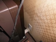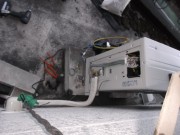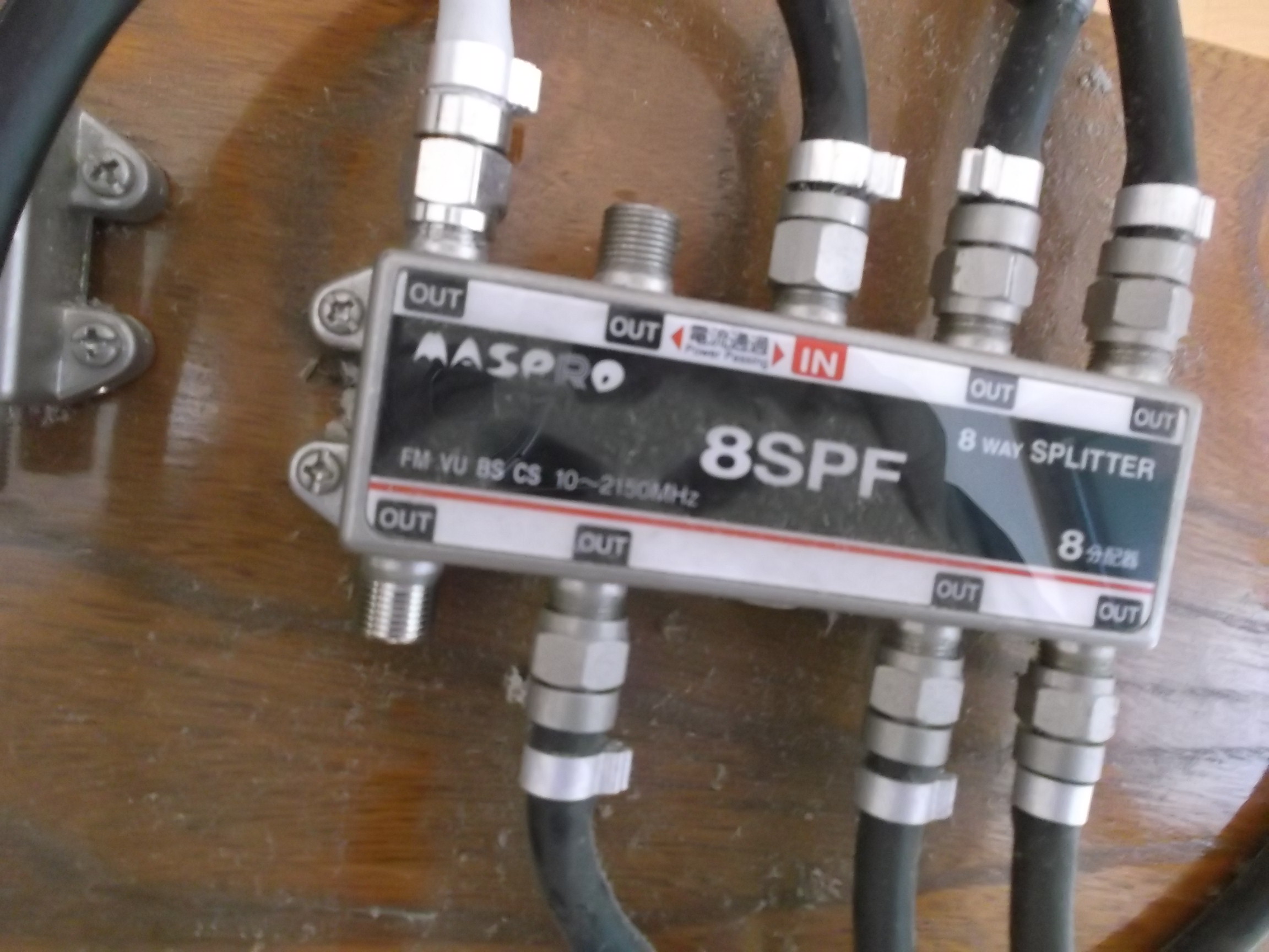 点検口から板を引き出すとご覧の通りです。 分配機はメーカー品『マスプロ』さんですが、ブースターは何故か2台『も』付いてます、、、。 増幅器が2段のカスケードです。 2段もブースターつけちゃ、ダメデショ、、。 『電波は強けりゃ、良し。』的な工事です、、、。 でも、テレビはチャンと見られたそうです、、、。