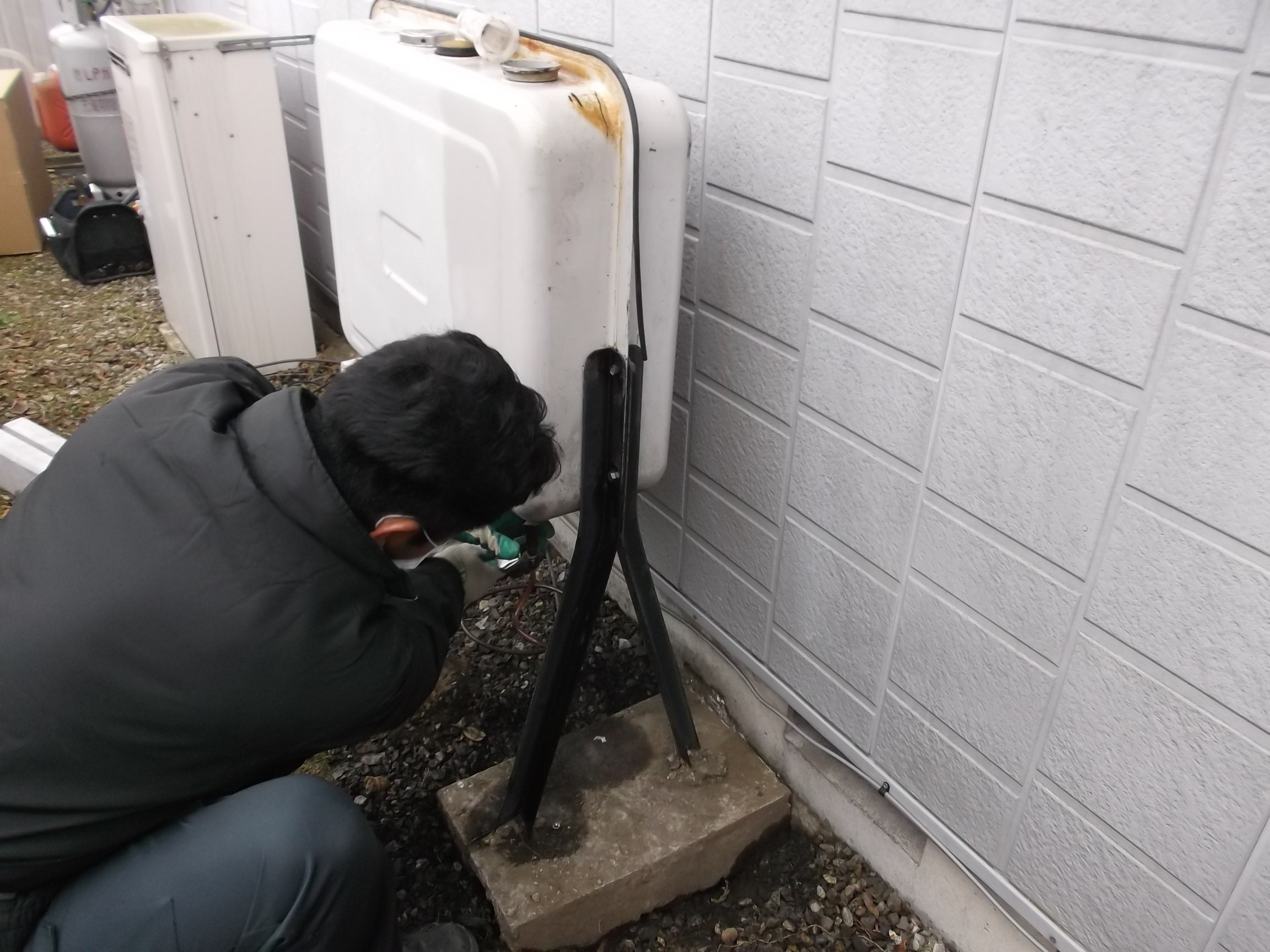 2014年12月24日 スタッフブログ始めてのお客様からのお電話です。 給湯器用の石油タンクが油漏れでお困りとの事です。 当然お湯が使えないので「今が今」のご様子でした、、、。 タンクの在庫・仕事の段取りをし直して「午前中ならば、対応可能」と連絡・出発。