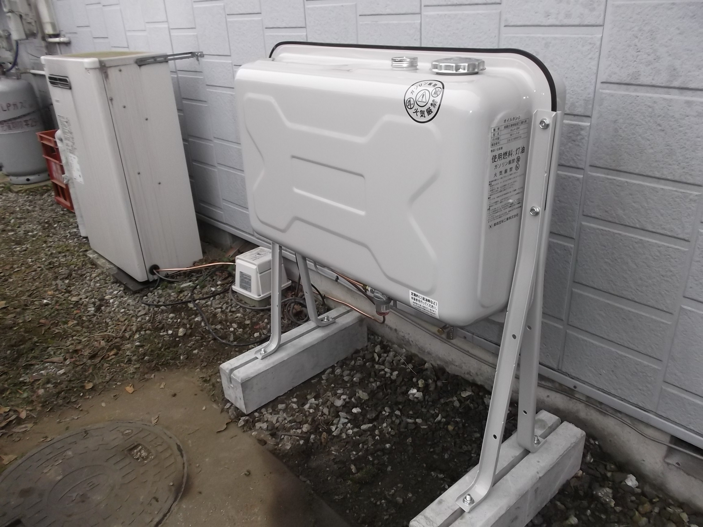 空のタンク・給油ポンプ等々で残りの油を出してから、既存タンク・コンクリートベースを撤去・バラシをして、新たなタンク・コンクリートベースを組立て給油・配管エア抜き・試験運転で交換工事完了でした。 タンクへの給油は奥さま自身との事で、一番下の位置で組み立てます。 完工後、試運転して頂き外観を確認し安心して頂けました。 栃木市藤岡町のI様、ご依頼ありがとうございました。 末永く安心してお使いください。