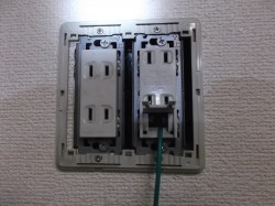 交換して完了します。交換したのは左側のコンセントですが、右側にもコンセントが在ります。 ここが間違いの一歩目でした。 お客様は左側のコンセントに炊飯器とレンジを差し込み使用していました。右側はコーヒーメーカー用として使用です。 大容量の電気を使う為の「専用回路」は右側のコンセントのみで、左側は専用回路ではなく他コンセントと共用でした。 時々ですがドライヤーも使う事が在るそうです。 何となく両方とも専用回路に見えるならびです、、、。 ご注意ください。