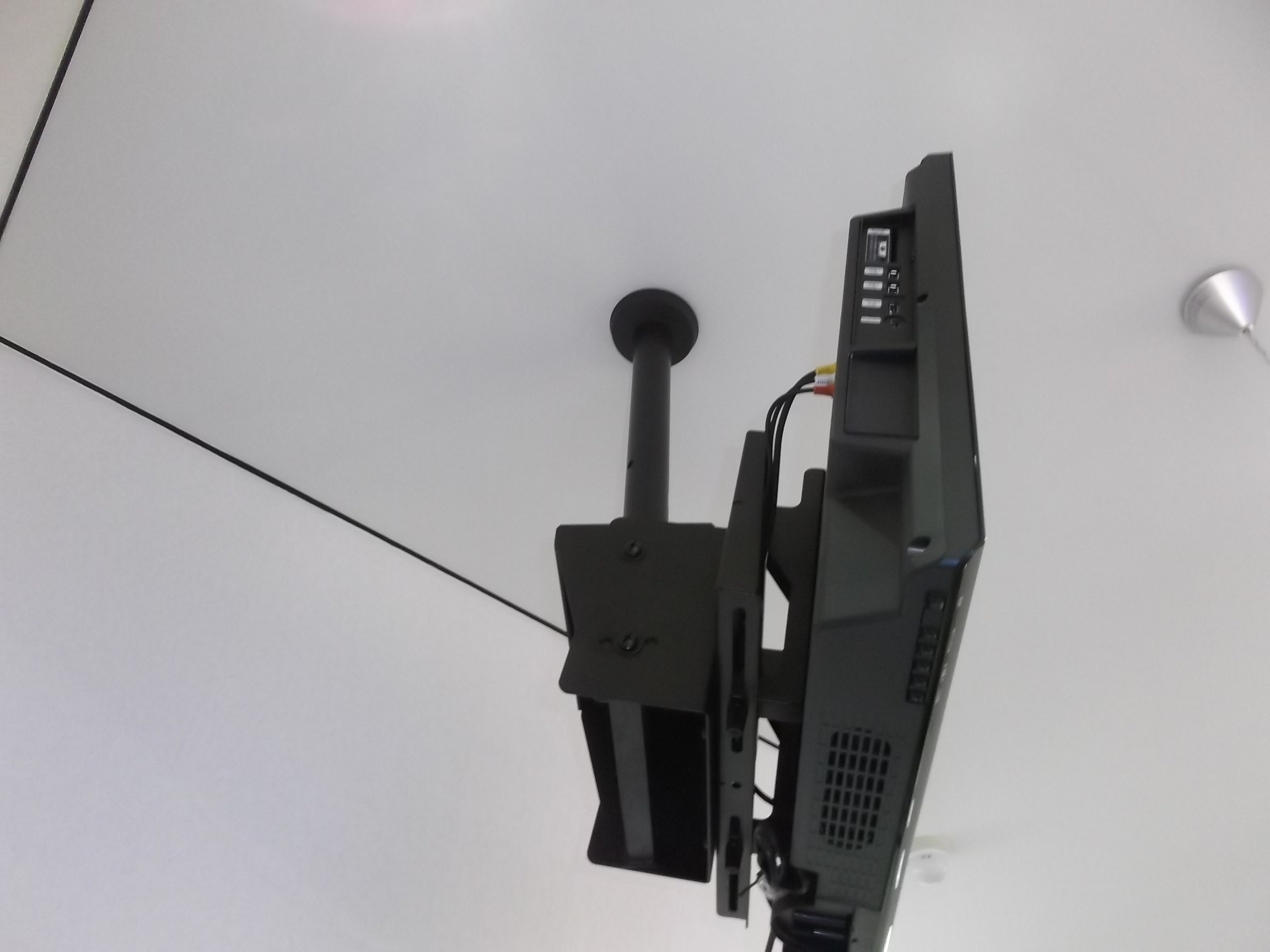 液晶テレビを天井から吊るすには天吊り金具が必要です。 天吊り金具はテレビと合うものと合わないものが在ります。 型式が古くなると、適合する専用金具も無くなってきます。 全部のテレビが、何時までも吊れる訳ではないので、ご注意ください!!! このテレビは、6年前のテレビですが何とかなりました、、、。