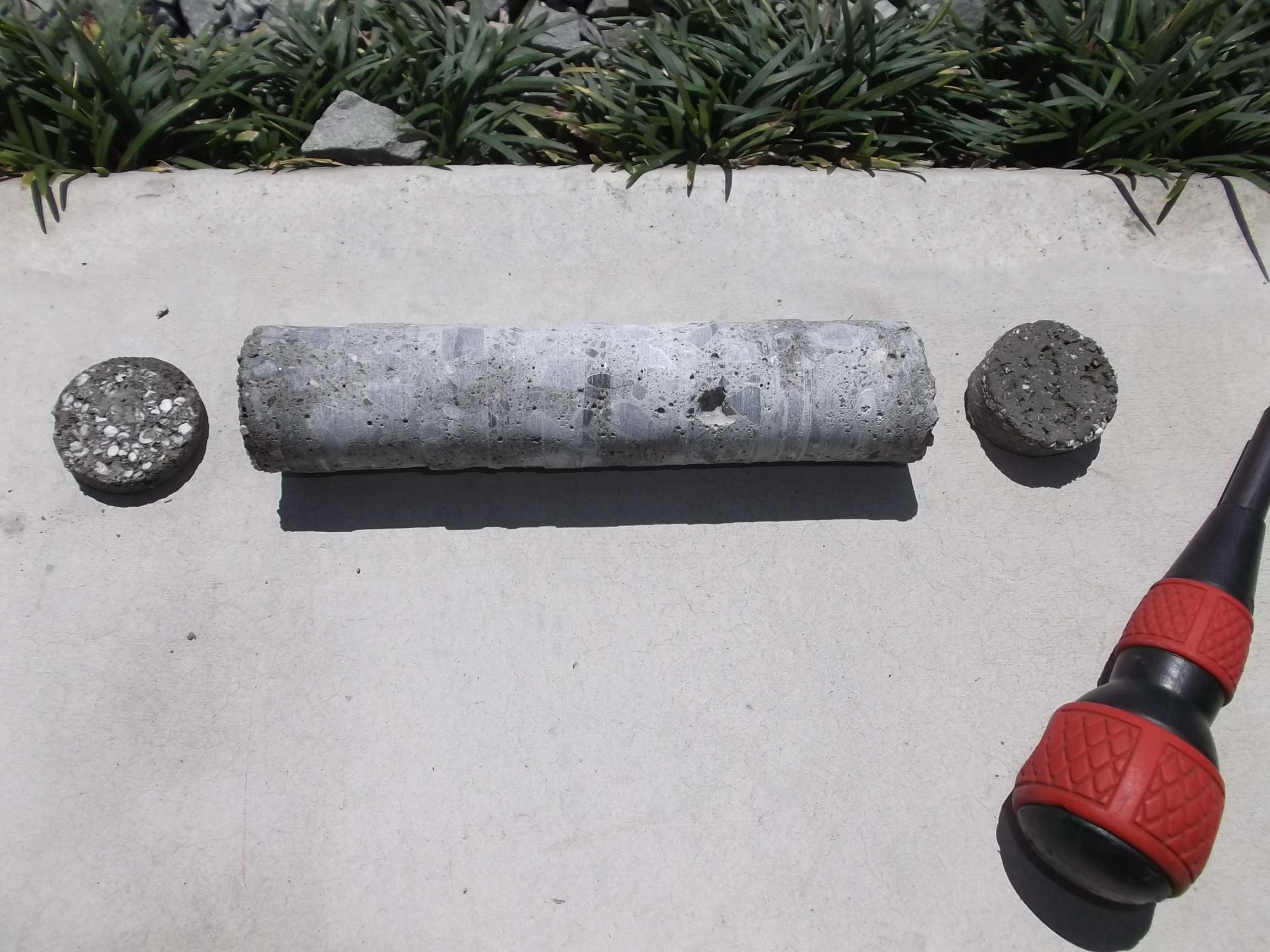 ドレン排水は真横に専用ドリルで綺麗に穴を開け、鉄筋が切れていないコンクリートを、お客様に確認していただきました。