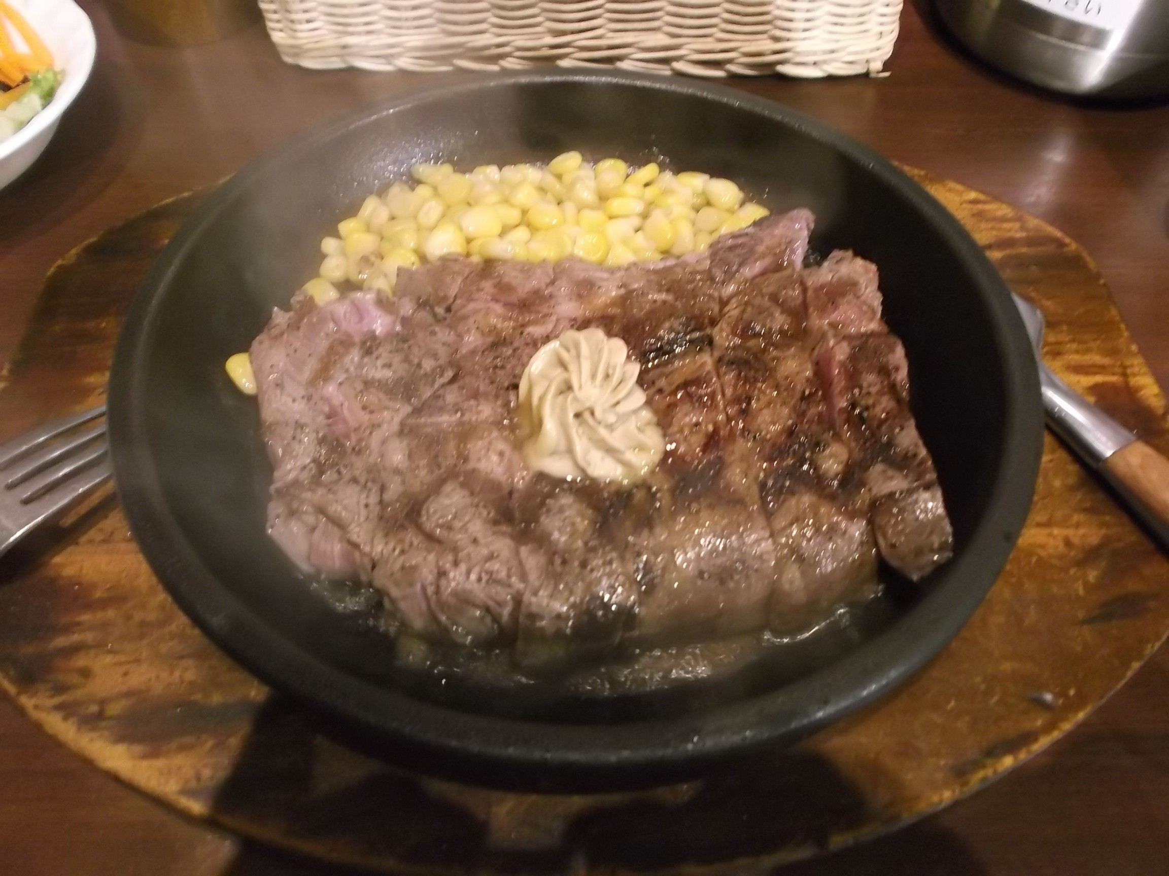 『デカ!!!』 三〇〇グラムはデカイデス。 そして、厚みが在ります。これにサラダ、スープ、ライス付き、、。 http://www.pepper-fs.co.jp/IkinariSTEAK/Azumabashi.html そして、ご馳走様でした!! やっつける事が出来ました。