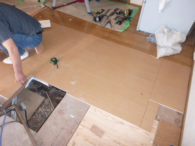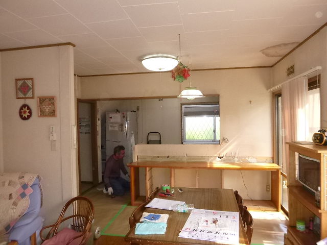 今回のリフォームでは対面式キッチンから壁付けに変更したため、床の張替、壁の補修、