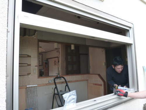 窓のみ取り外し、既存のフレームを残し新たに小さい枠を収めるため、最小限の