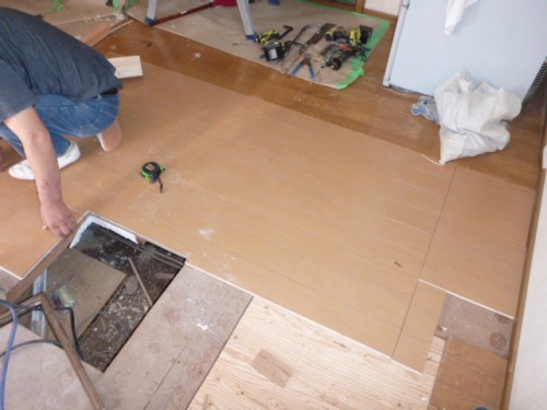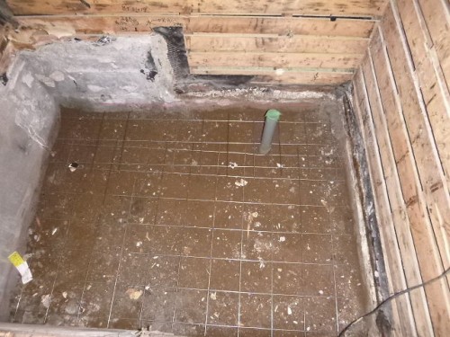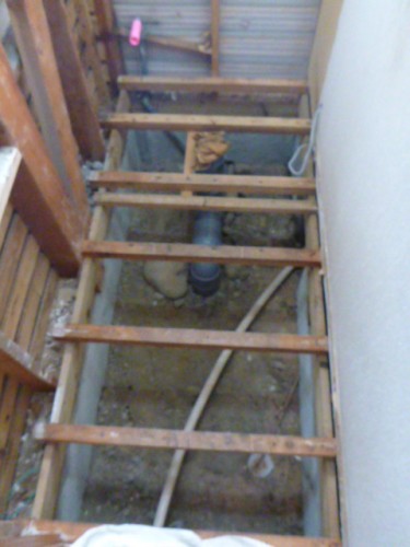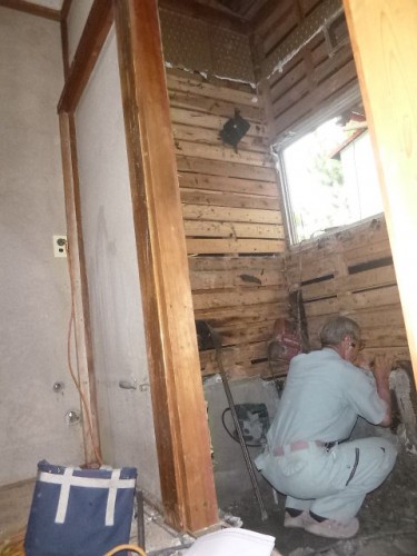 手洗い用の給排水を設けるため床も解体し配管を行います。