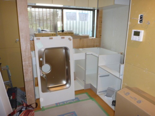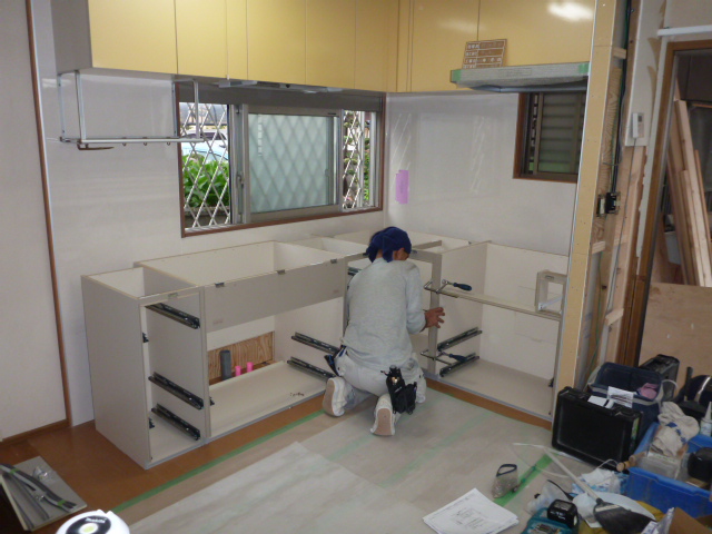 キッチン, スタッフブログ, リフォームいよいよキッチンの設置です。