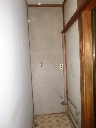 程度の広さしかない脱衣所だったため、台所が洗面所と兼用になっていました。