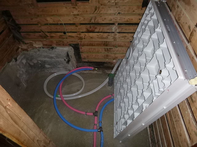 既存の給水・排水などの配管も新しく交換し、給湯機も