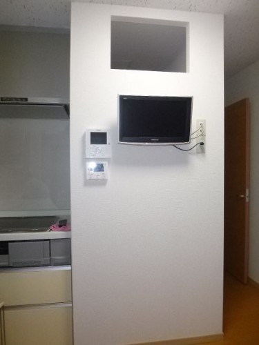 因みにキッチン側に壁が出てきてしまいテレビ台が置けなくなったため、