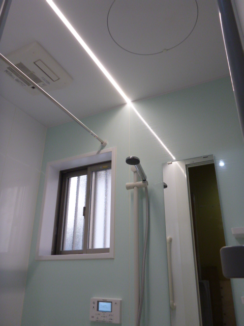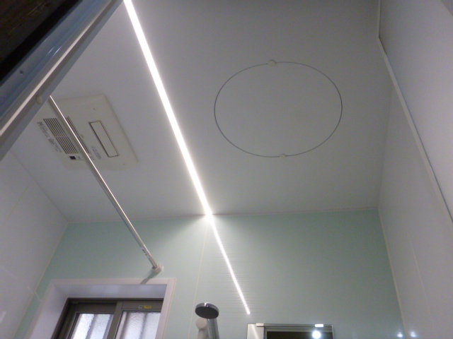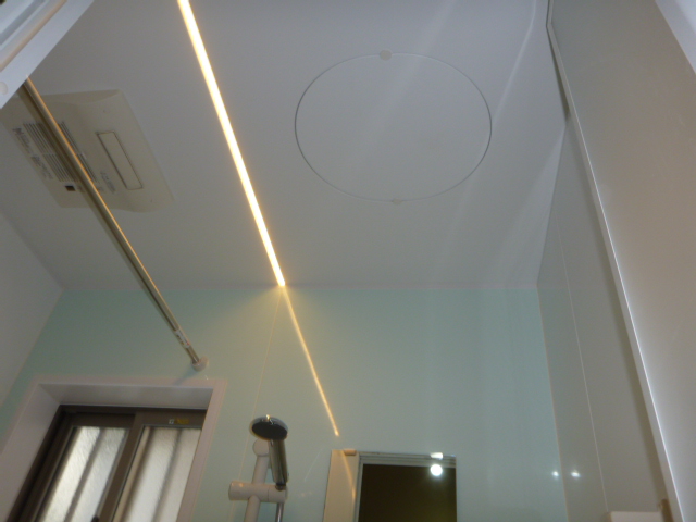 天井に埋め込まれた1本のラインが浴室を明るく照らします。
